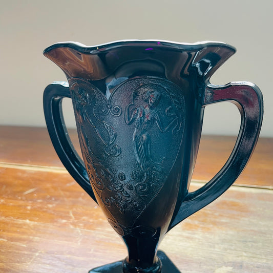 Green Enameled Lidded Pot with Metal Holder - Vintage