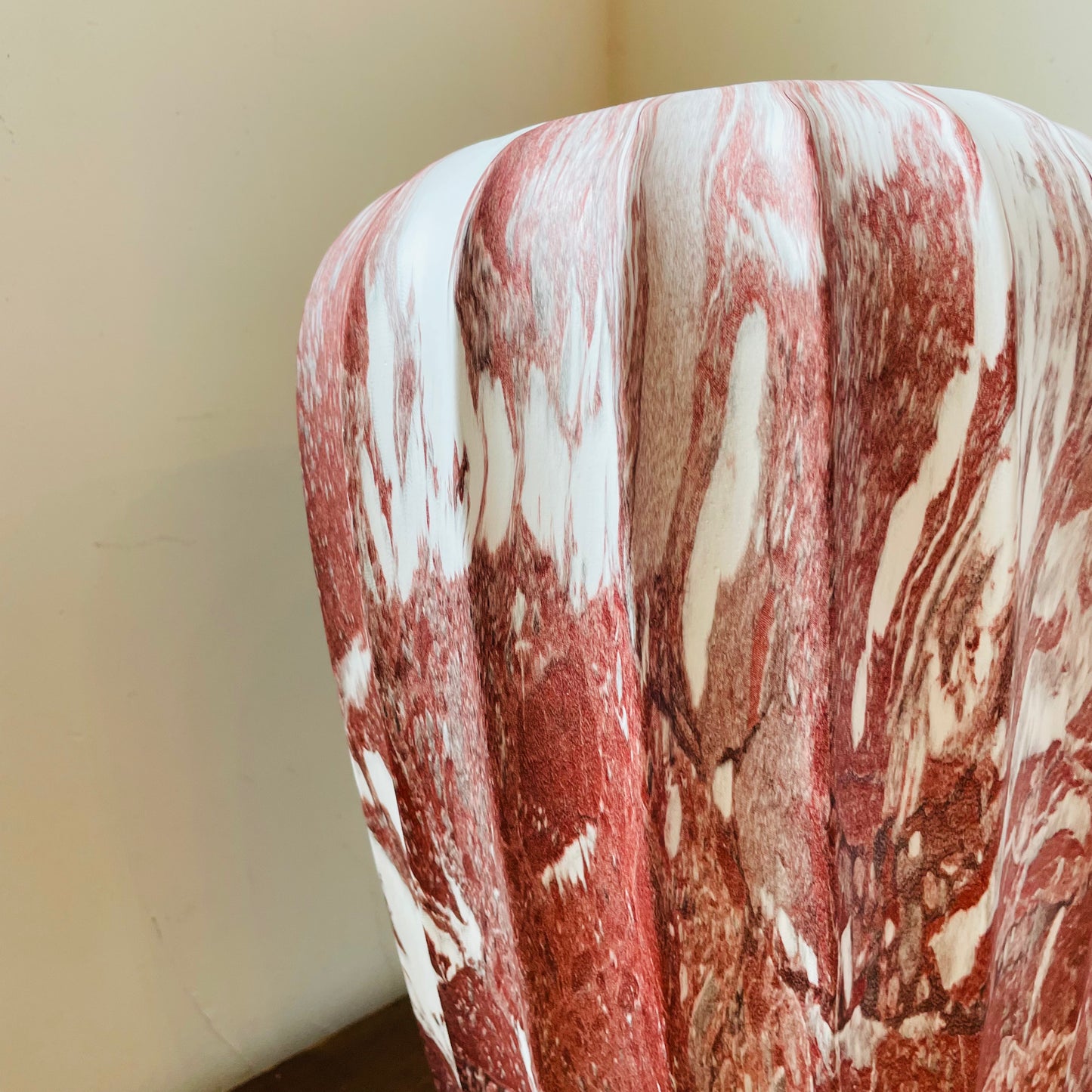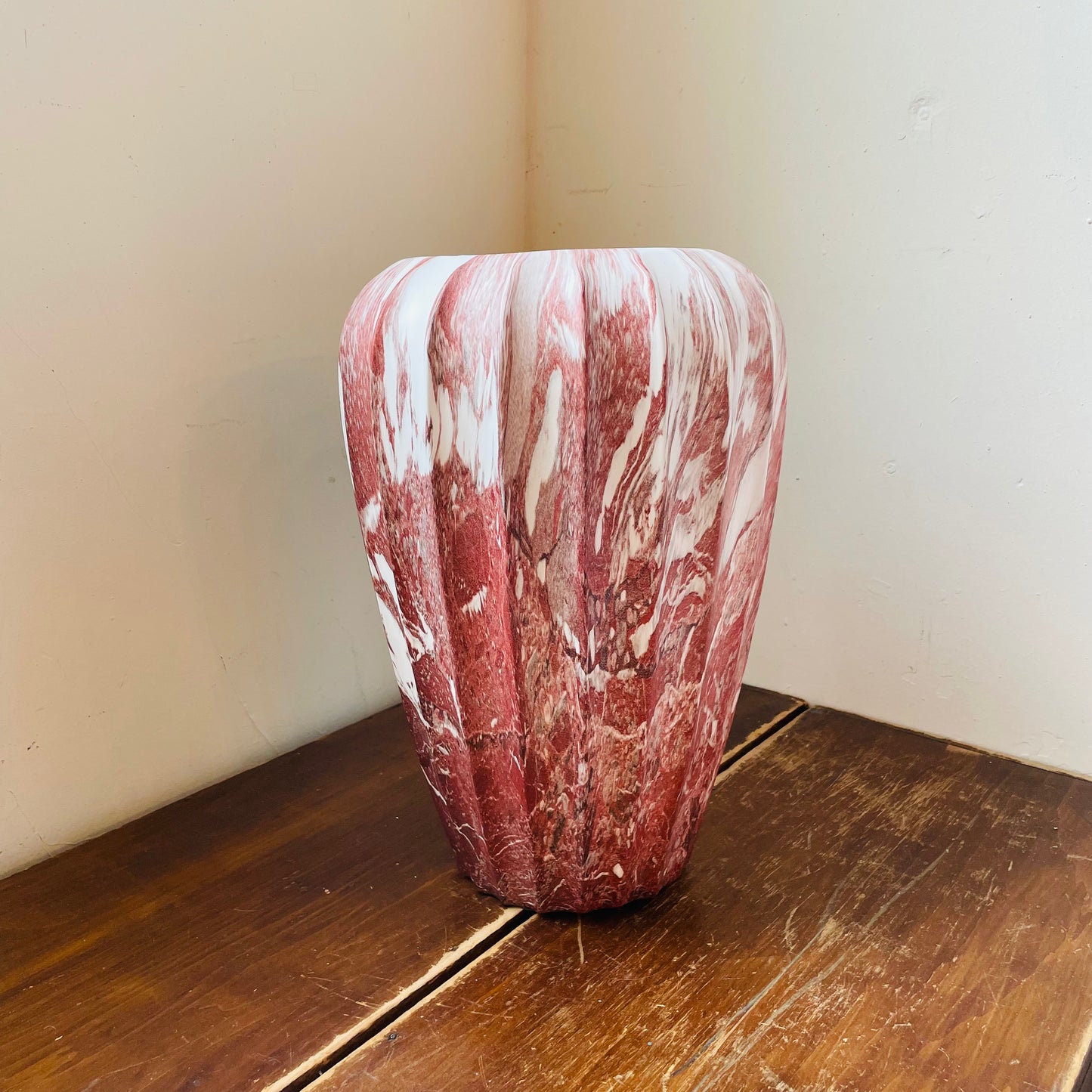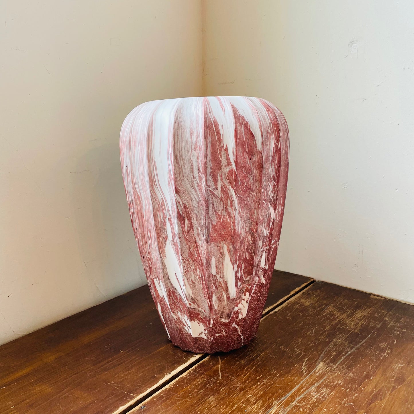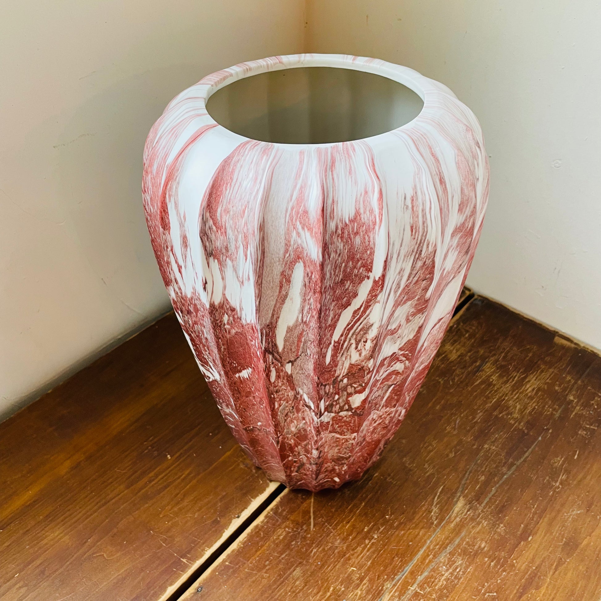 The Abedon Short Vase introduces timeless sophistication through its masterful marble-effect design. This modern ceramic decor piece showcases a striking muted burgundy-clay red with white swirled patterns, creating a sophisticated rustic-modern aesthetic. The rich terracotta undertones give depth to the red coloring, while the marbled white elements create a natural stone-like appearance. Standing 15.5 inches tall with a generous 10.5-inch width, this table vase features a graceful tapered silhouette that widens from base to rim. Perfect for contemporary home styling, entryway tables, or mantel displays, the vase's distinctive organic pattern and substantial size make it an eye-catching focal point. The versatile design complements both minimalist and traditional interior styles while offering ample space for dried arrangements or standing alone as sculptural decor.