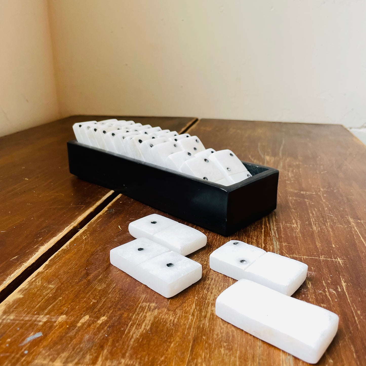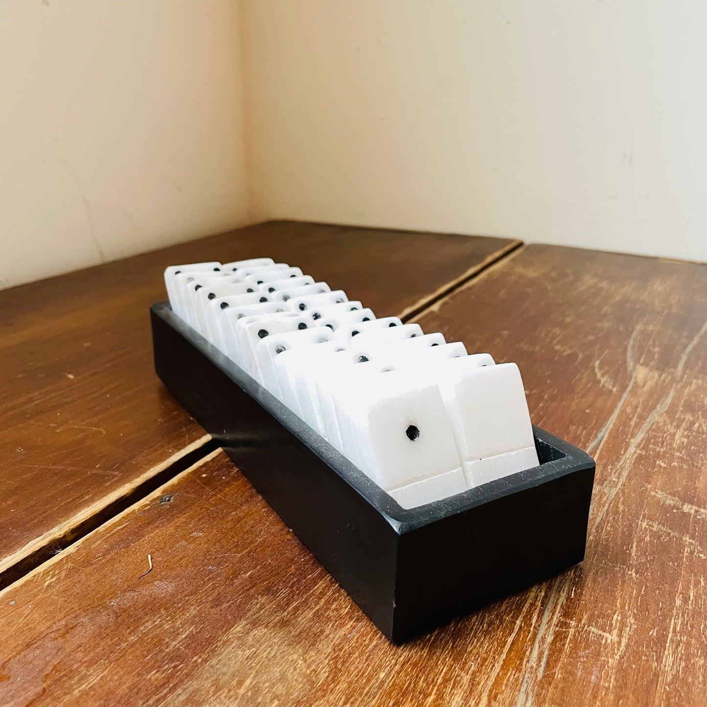2-1/4"L x 1"W Handmade Alabaster Dominoes in Soapstone Box, Set of 29
