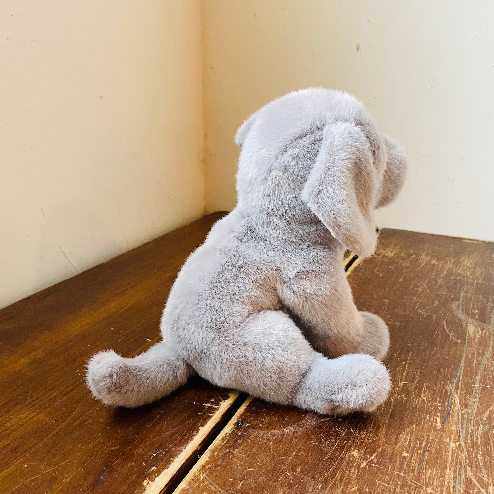 Argenta the Silver Lab stuffed animal has the same friendly and energetic personality as other Labrador Retrievers, but, thanks to his unique, silvery gray coat, he stands out from the crowd! We’ve depicted Argenta with a soothing coat of delectably soft plush fur. His floppy pose can sit up or lie down but is best suited to slouch lovingly into your arms. Bean filled paws and silky, high quality polyester fill enhance the cuddling experience. Argenta’s sweet puppy face is brought to life with a soft, leatherette nose and winsome brown eyes. Will Argenta’s irresistible appearance earn him a place as part of your family?