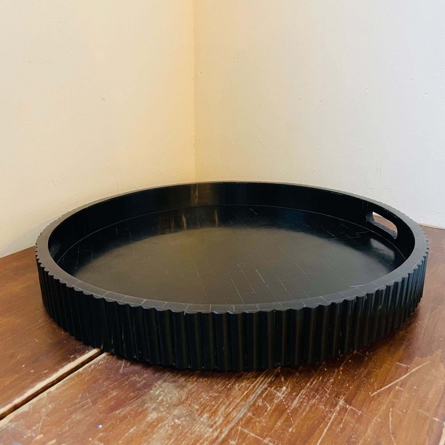 20" Round x 2"H Resin Ribbed Tray w/ Handles, Black