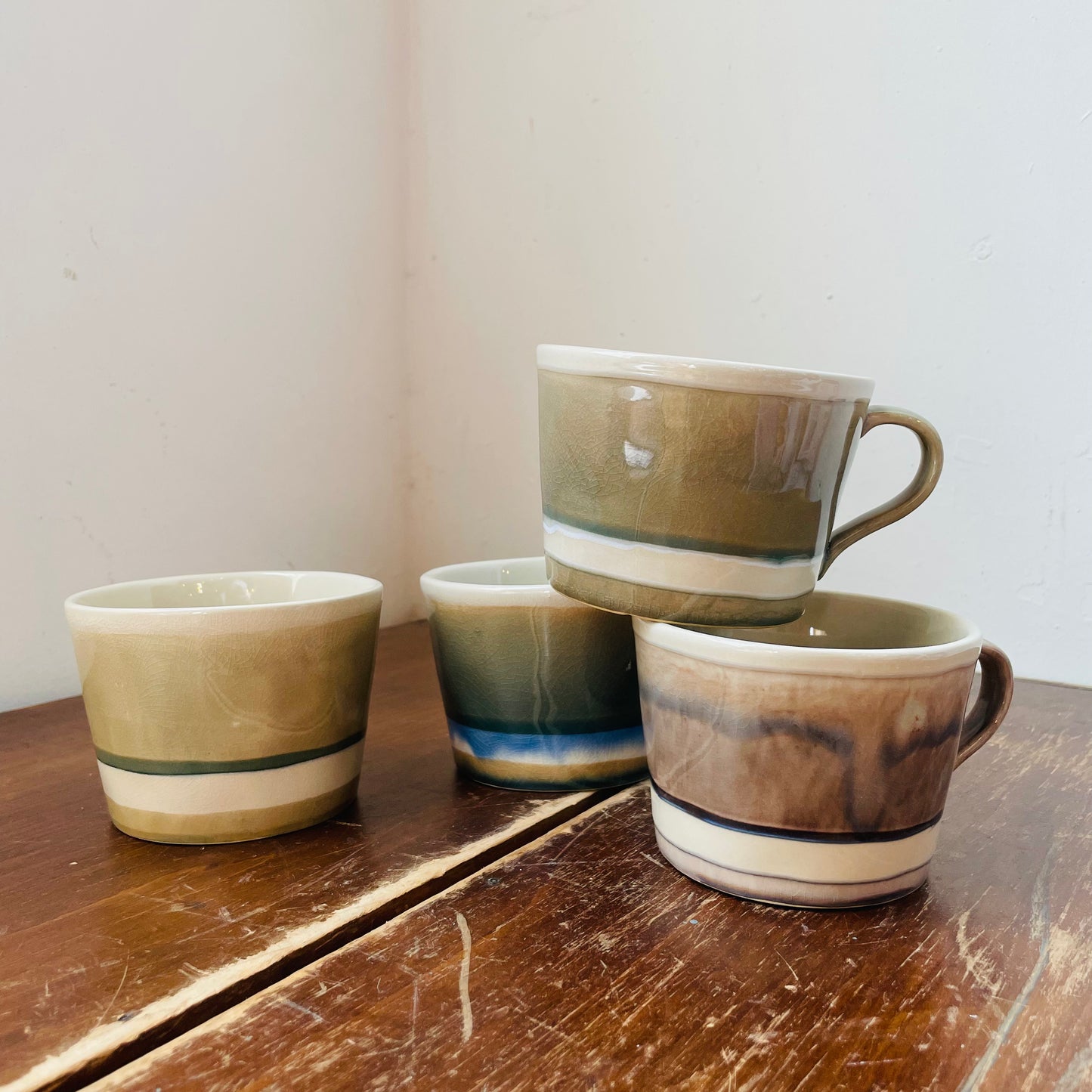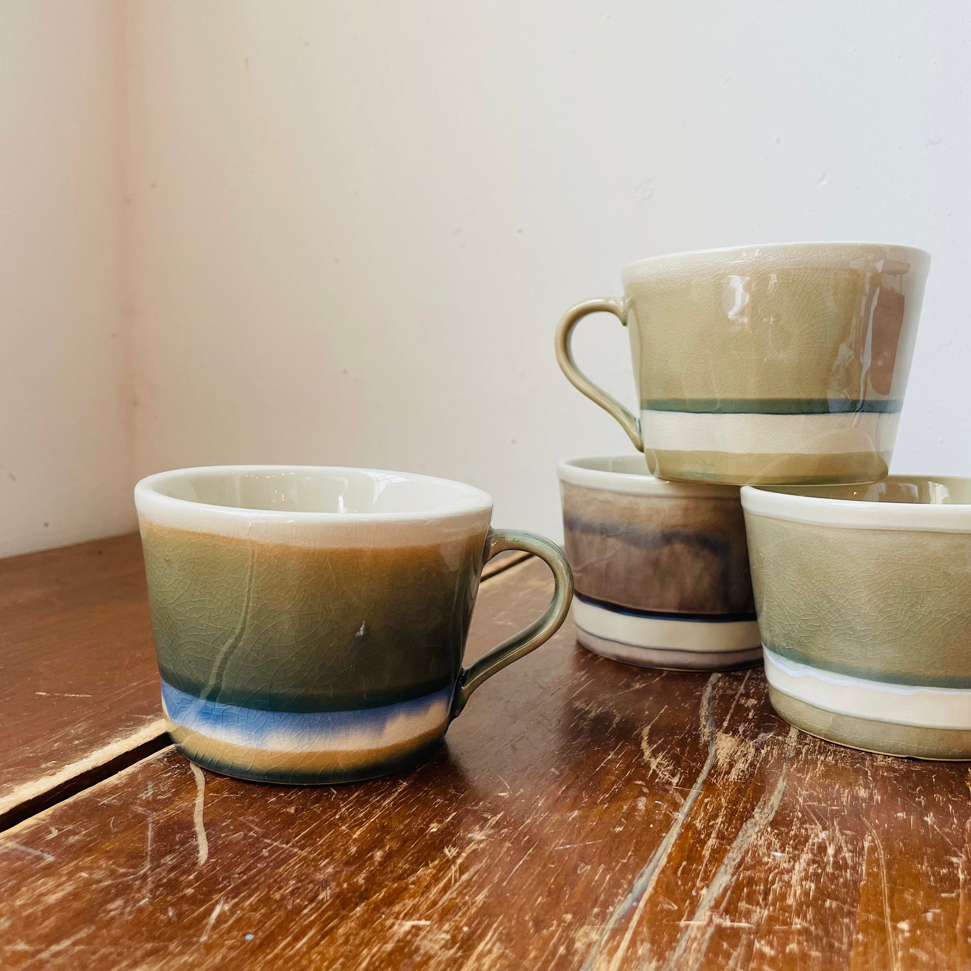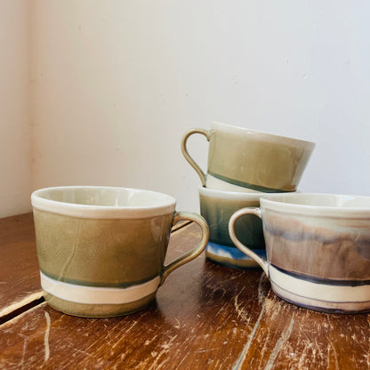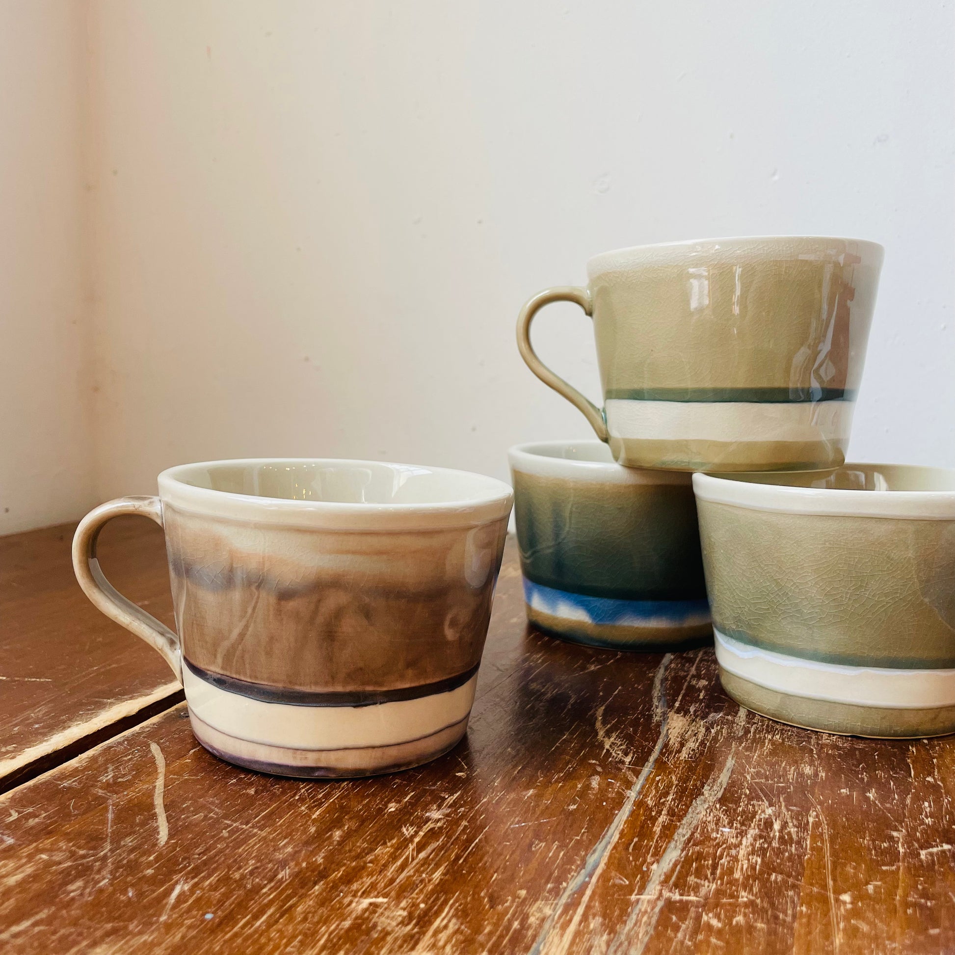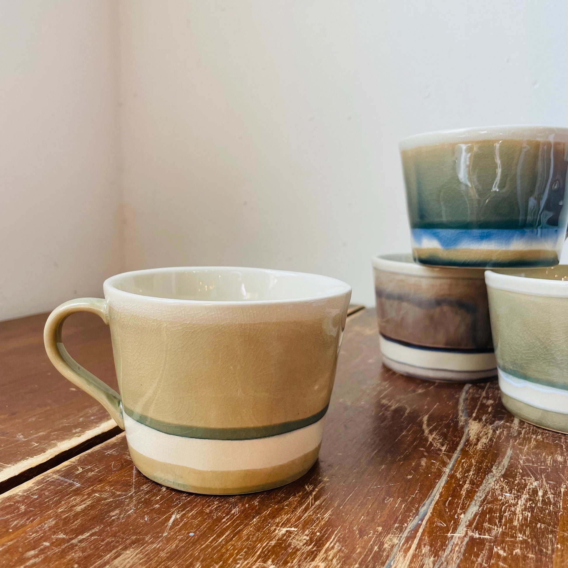 4" Round x 3"H 12 oz. Stoneware Mug w/ Stripes, Reactive Crackle Glaze, 4 Colors (Each One Will Vary)