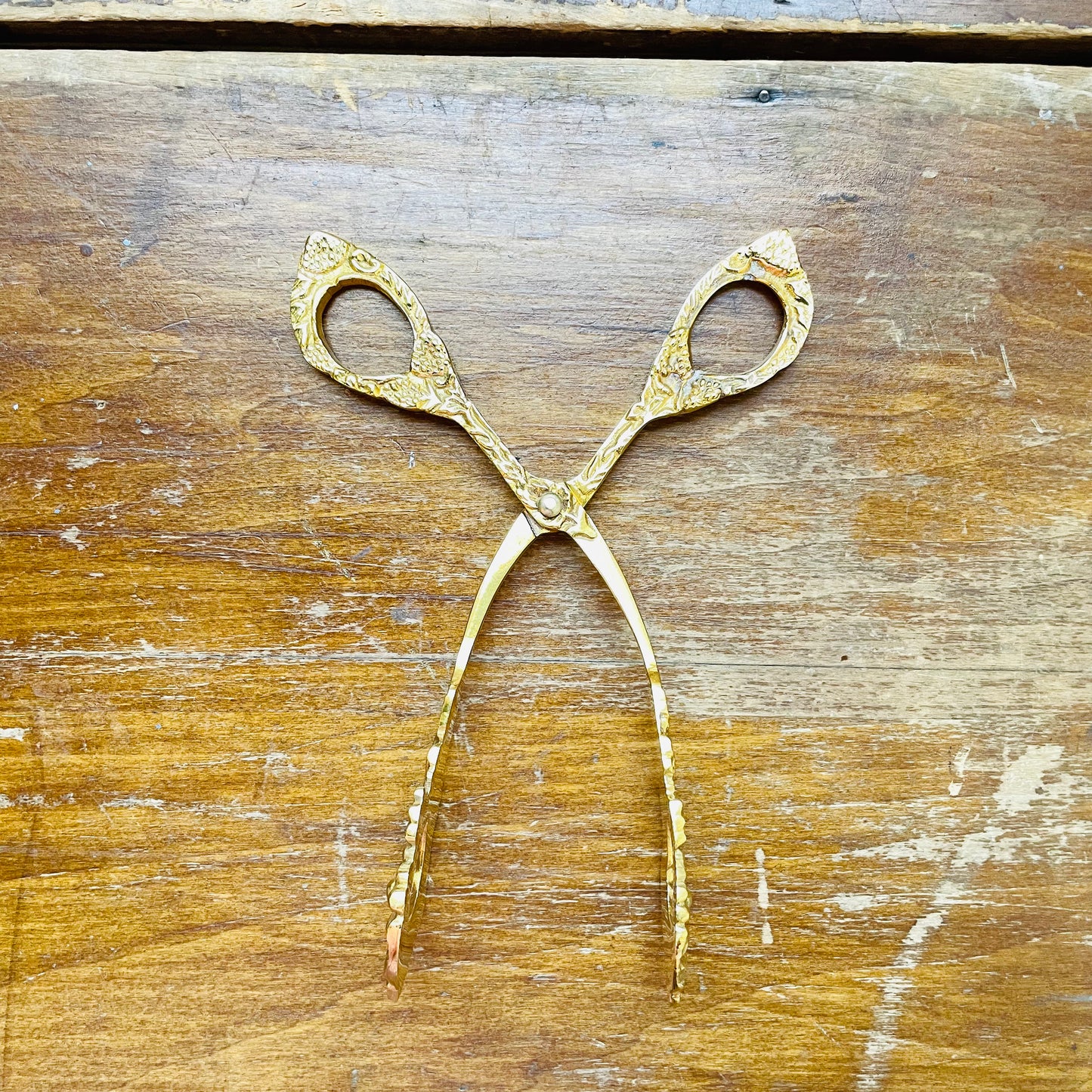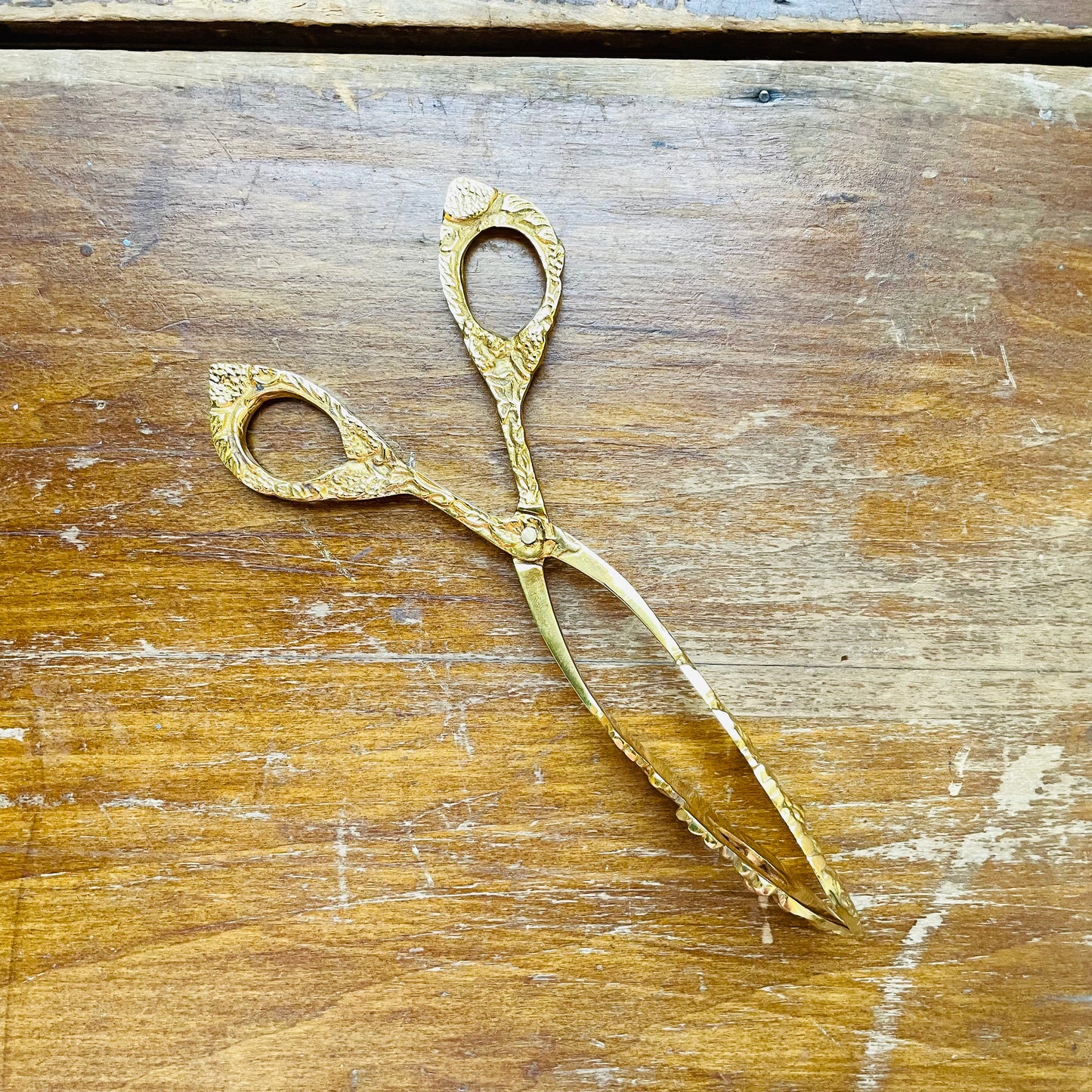 7-1/4"L Embossed Brass Grape Vine Shaped Tongs