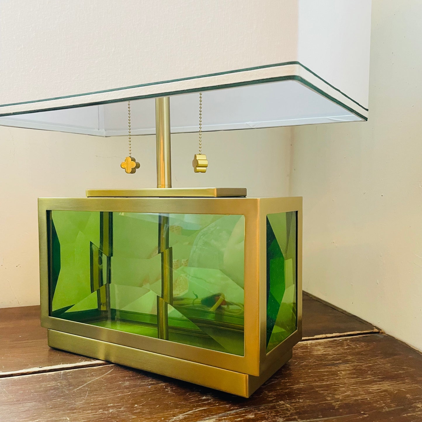 CELESTE | Tamara Day | Green Gold Pure Crystal Table Lamp | 21in Ht. X 18in W. X 10in
