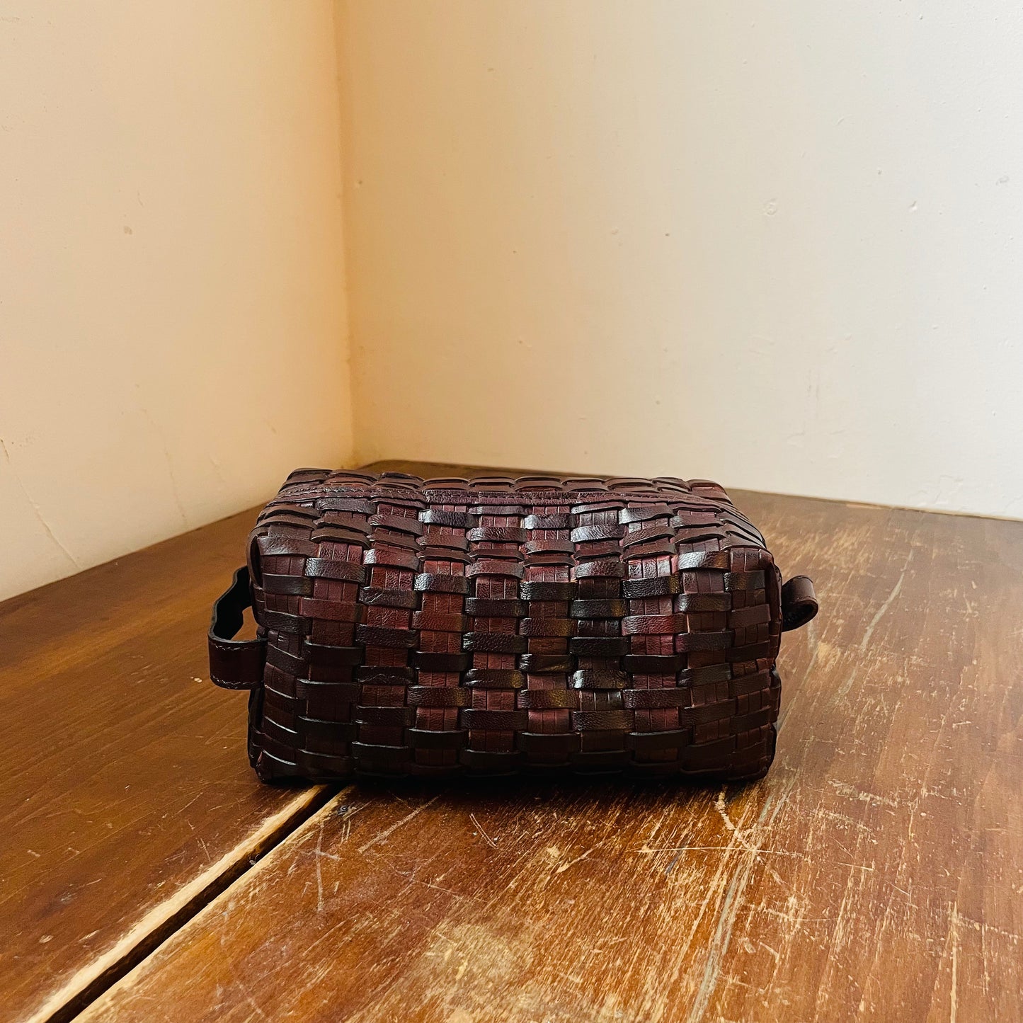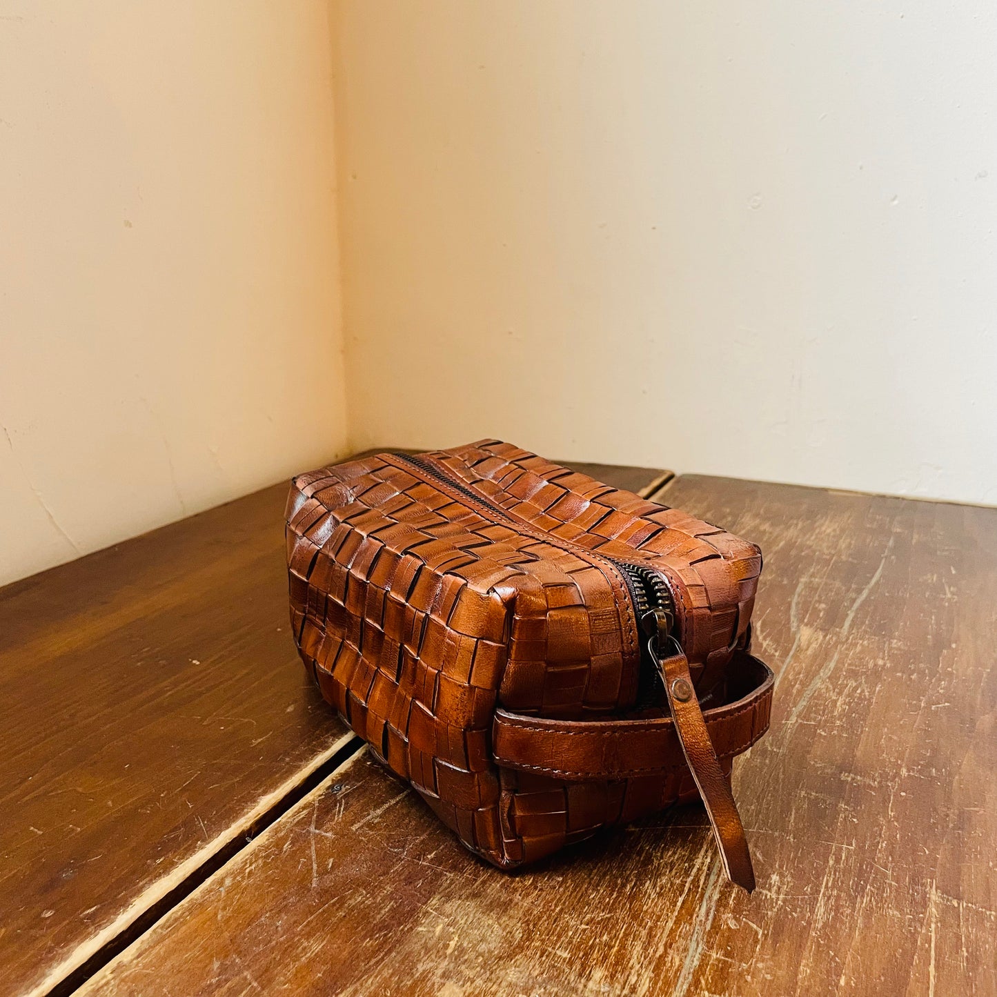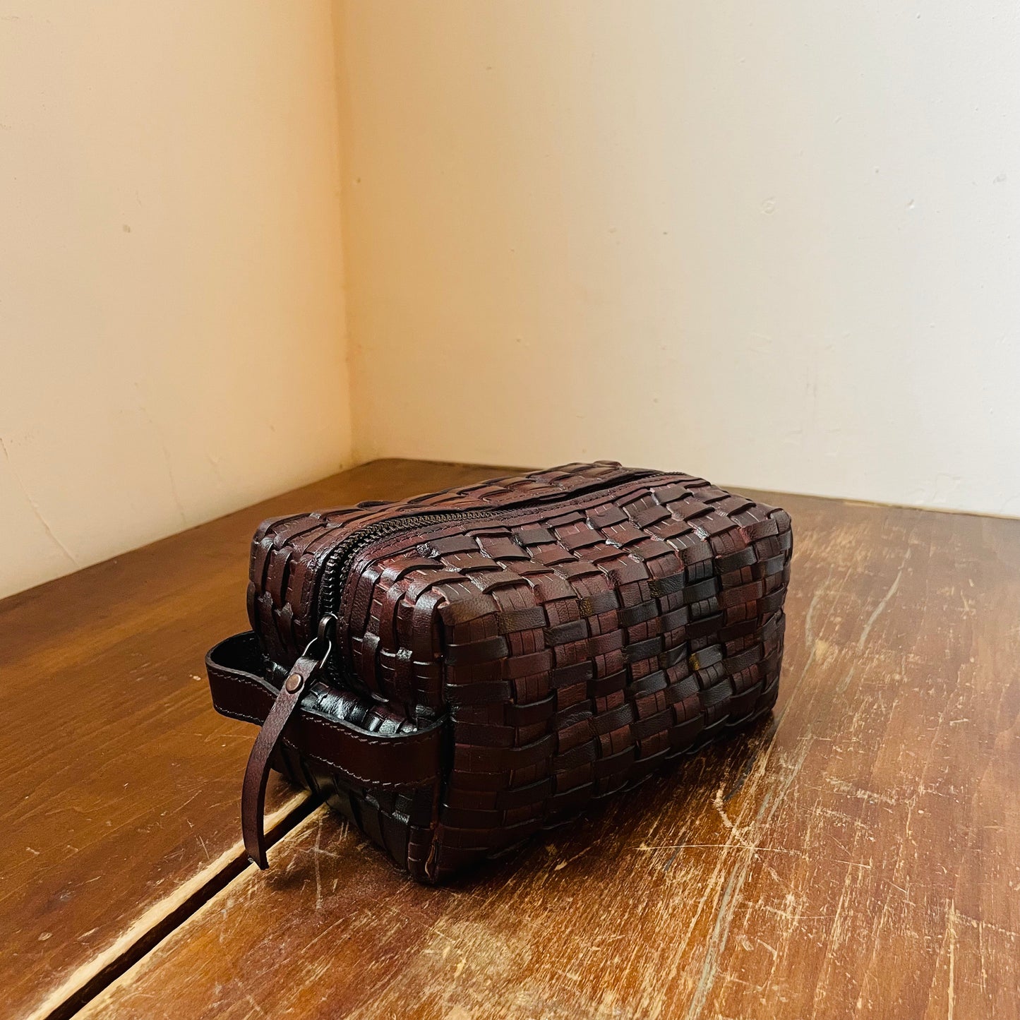 - Featuring a chestnut woven leather exterior in two distinct patterns, this dopp kit exudes sophistication and elegance