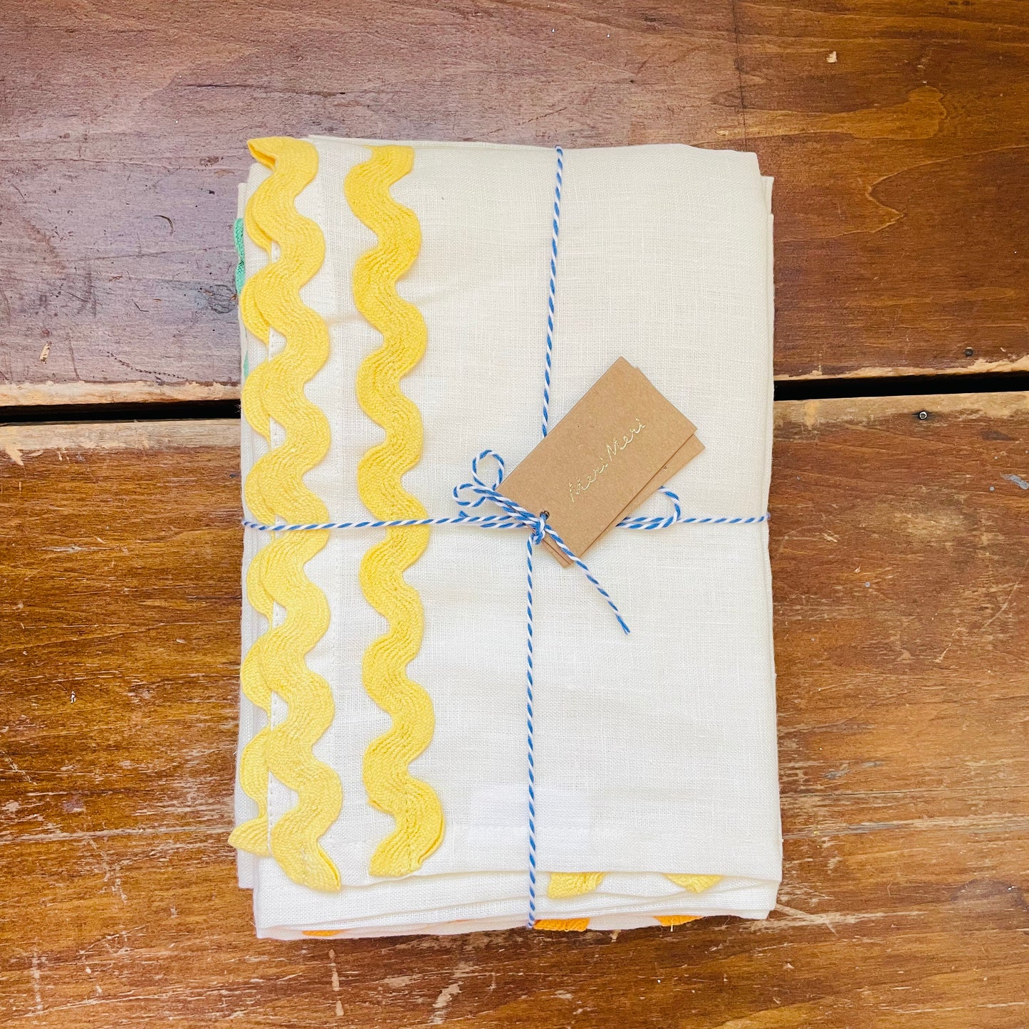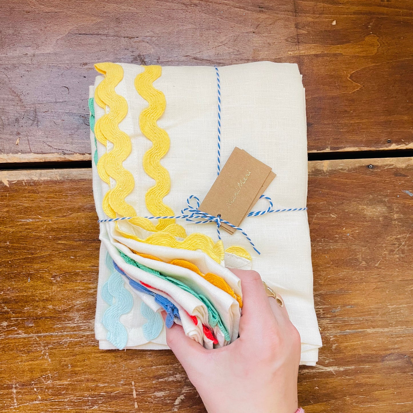 Our premium large linen napkins are not only beautifully crafted, but add a stylish decorative touch to any party table. They feature on-trend ric rac for a colorful statement, and are ideal for birthday parties, garden parties, family celebrations and dinner parties. You can also use them as placemats if you so desire. They make a wonderful hostess gift too.