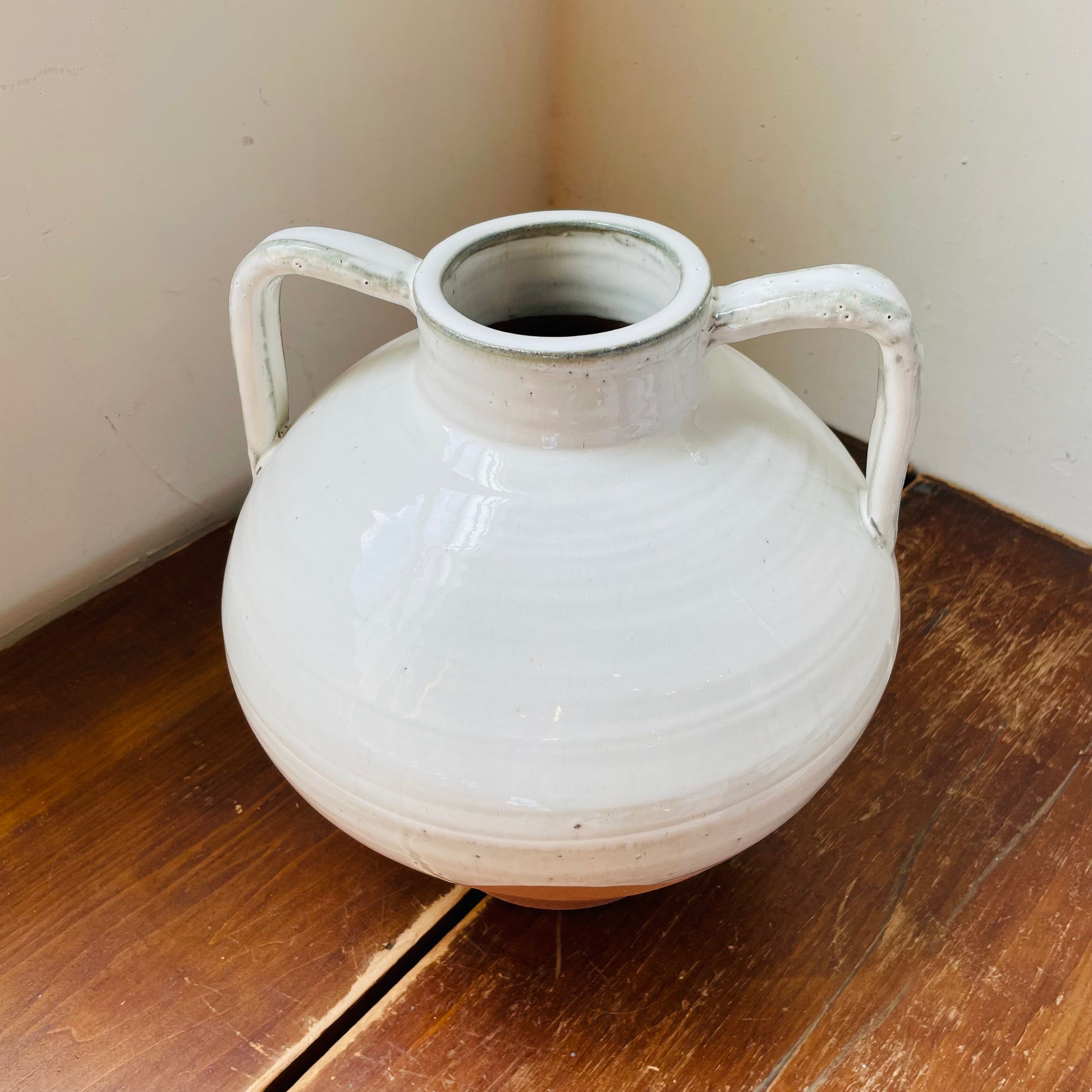 The Darby Terracotta Vase is a striking decorative piece that combines contemporary design with rustic charm. Standing 11.5 inches tall with dimensions of 11"L x 11"W, this generously sized vessel features a distinctive two-tone finish - a warm terracotta brown base that gracefully transitions to a crisp white upper portion. The vase's elegant silhouette showcases a wide, bowl-like opening that tapers to a narrower base, creating a modern yet organic form. Crafted from terracotta and finished with a refined glaze, this piece offers both durability and sophistication. Its versatile design makes it an ideal centerpiece for dining tables, console tables, or mantels, whether styled on its own as a sculptural element or filled with dried botanicals or faux flowers. The neutral color palette ensures it complements various interior styles, from modern farmhouse to contemporary minimalist decor schemes.
