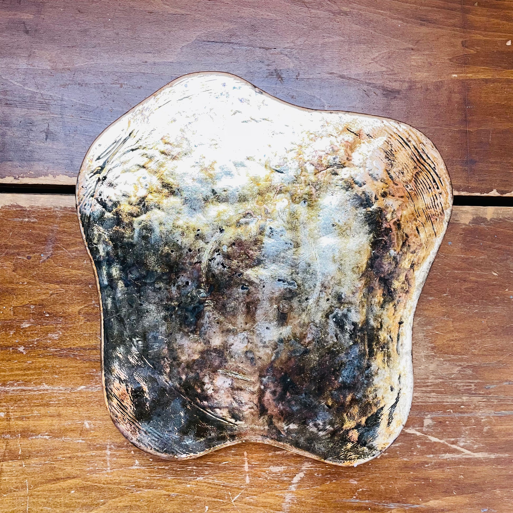 Decorative Mercury Glass Organic Shaped Platform, Silver Finish