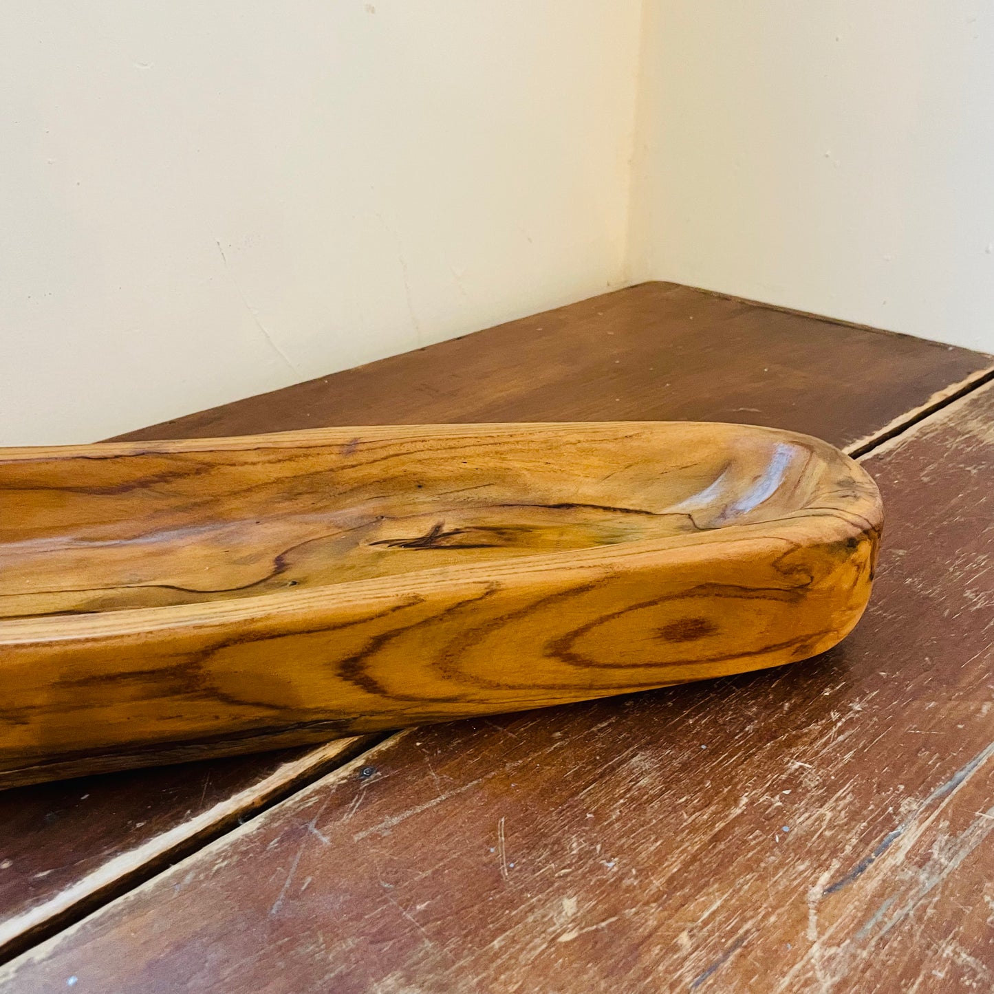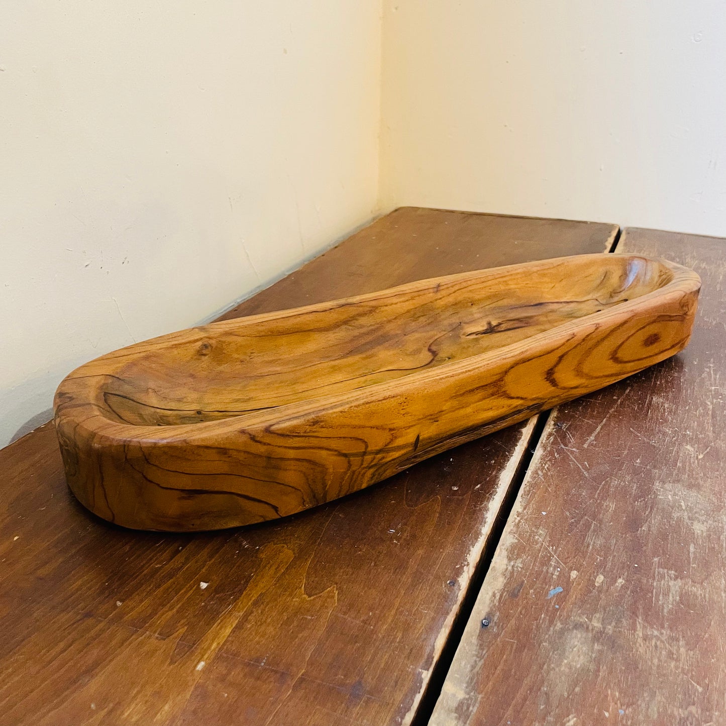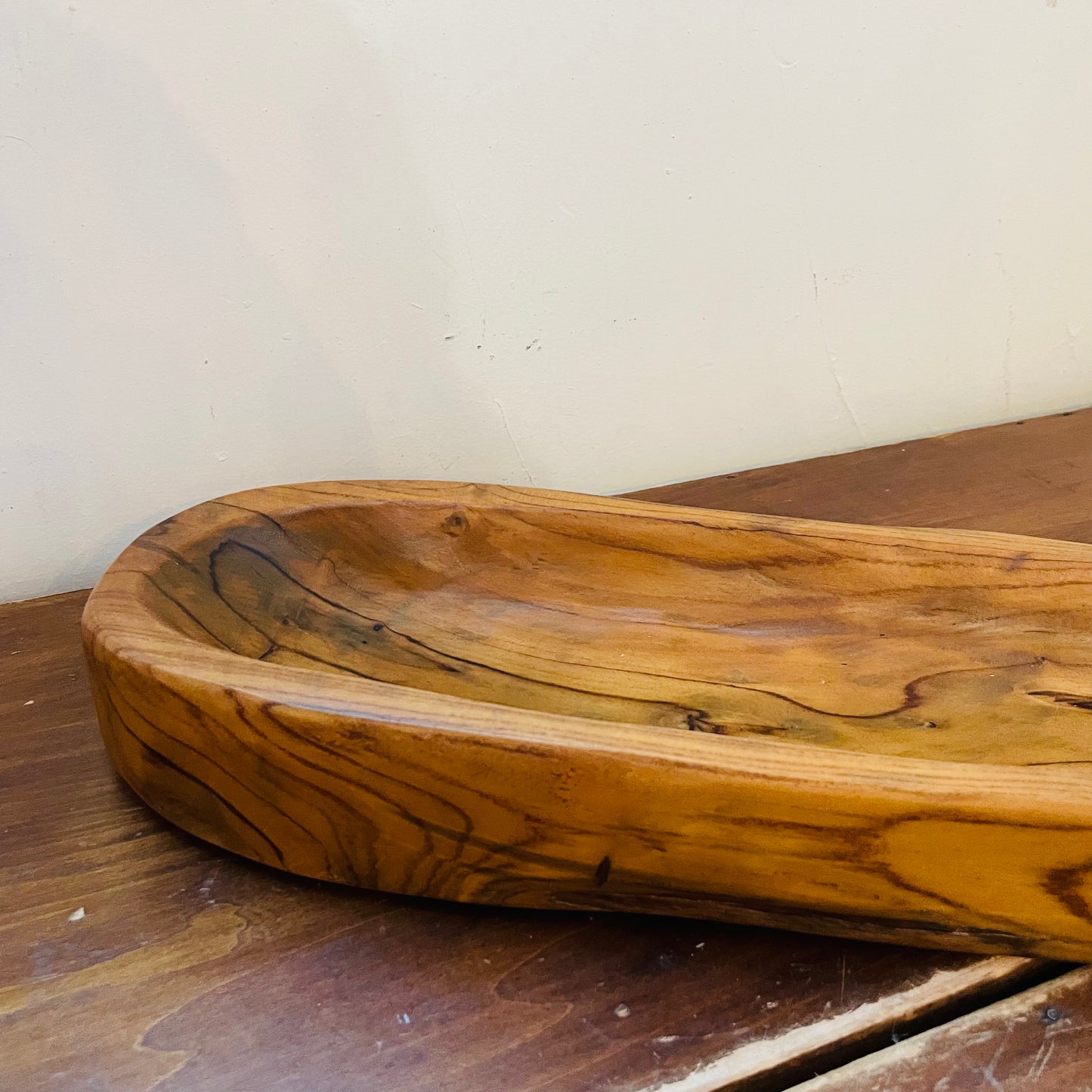 19-1/2"L x 6-1/2"W x 2-1/4"H Decorative Teakwood Bowl w/ Live Edge, Natural (Each One Will Vary)