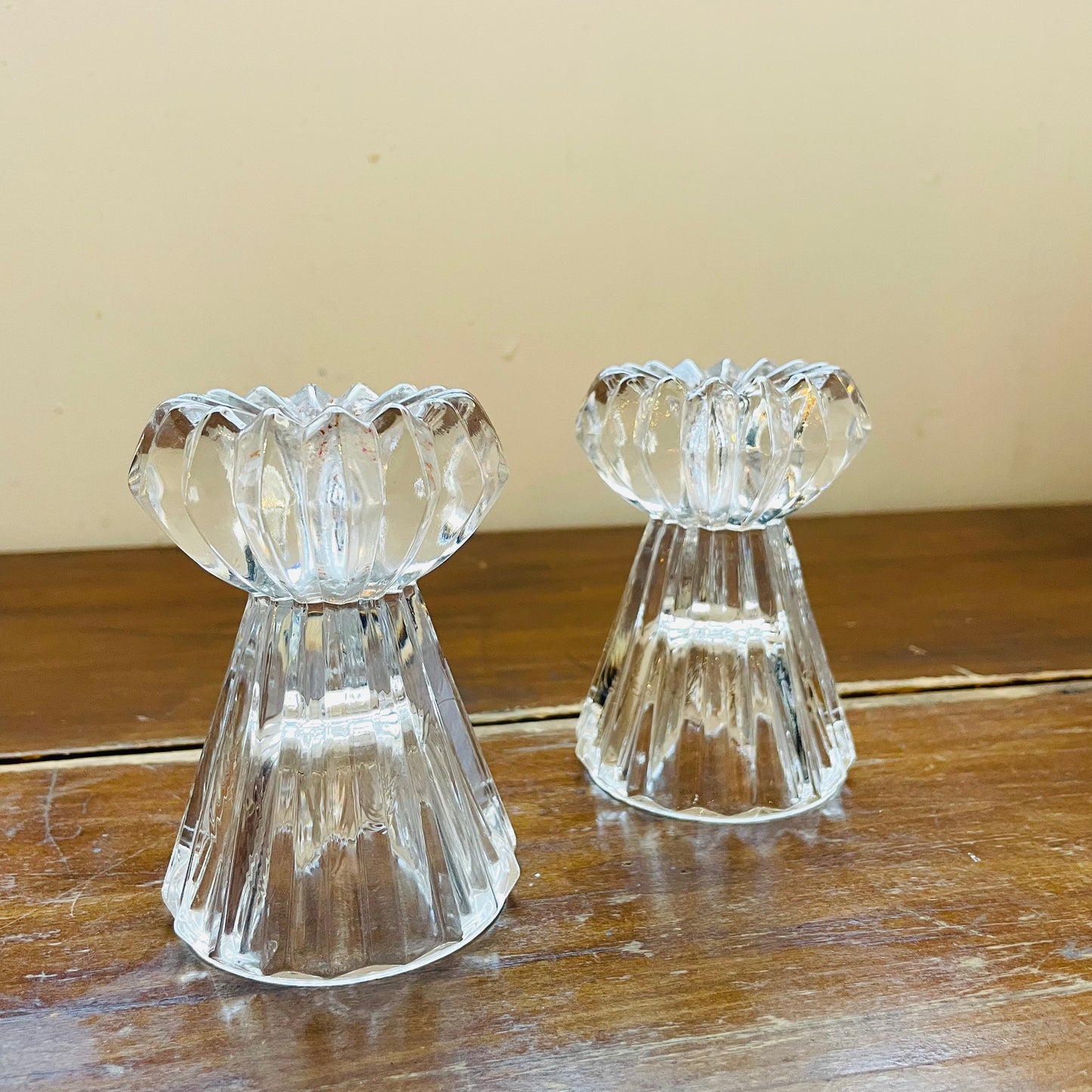 Diamond Fire Glass Candle Stick Holders- Vintage