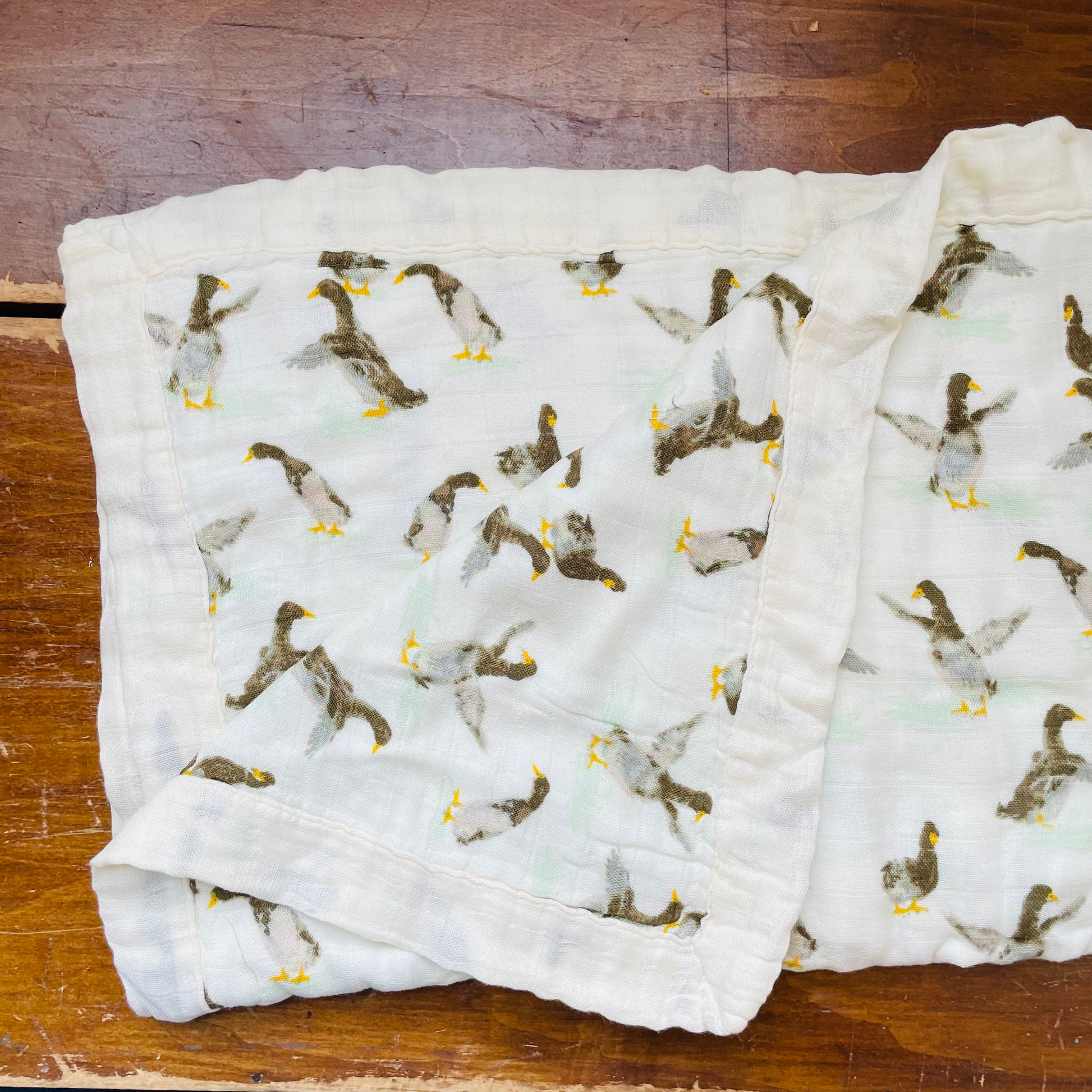 The ultimate in comfort, our generously sized Big Lovey Muslin Blanket in the Duck print allows for extra snuggles and cuddles.