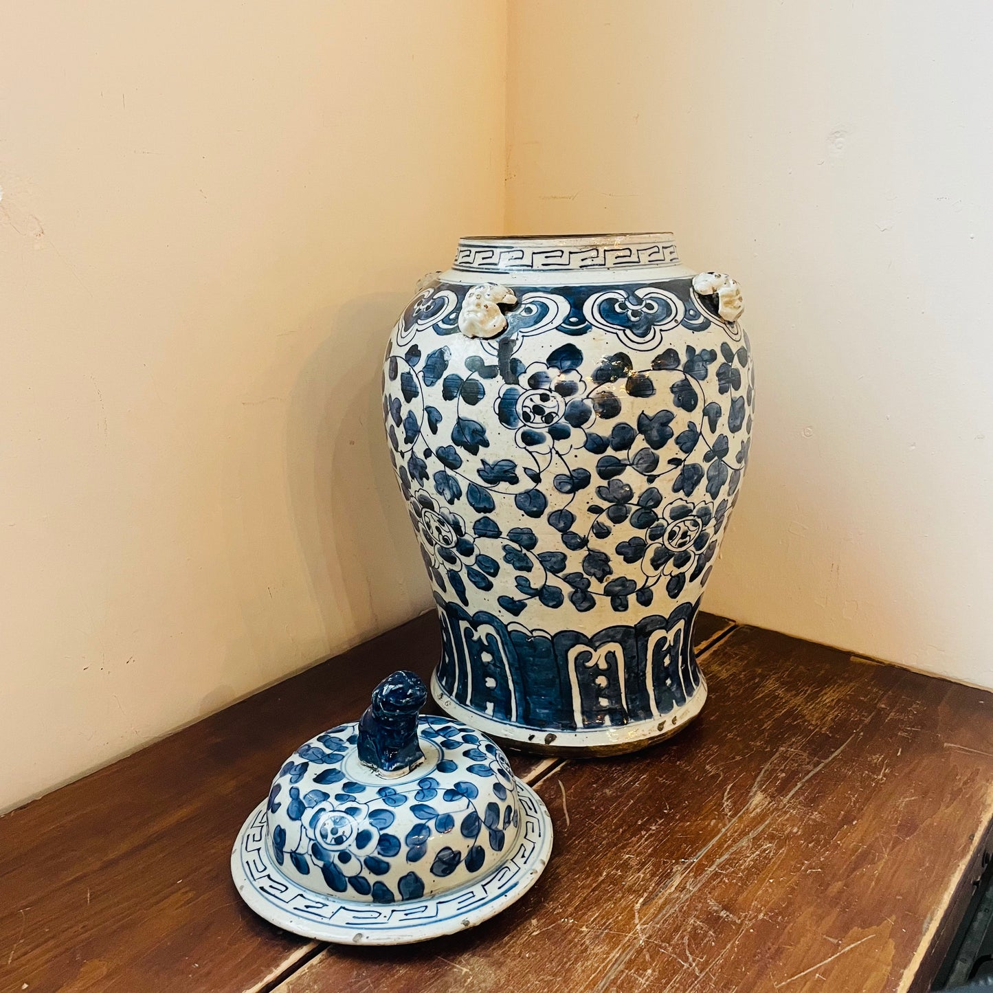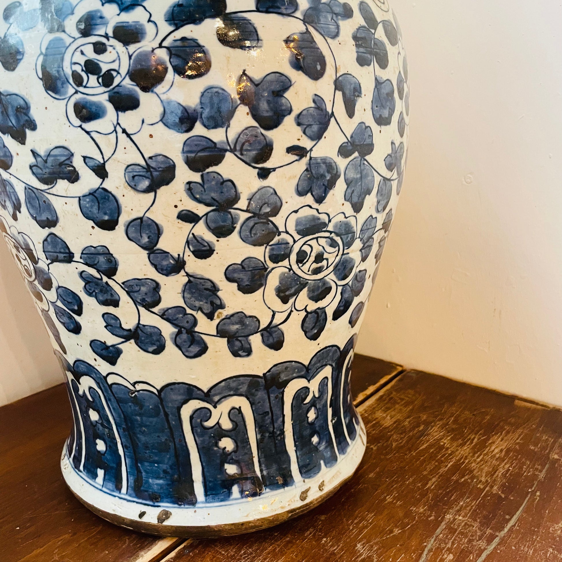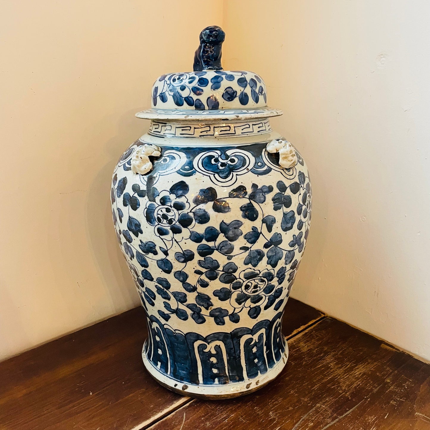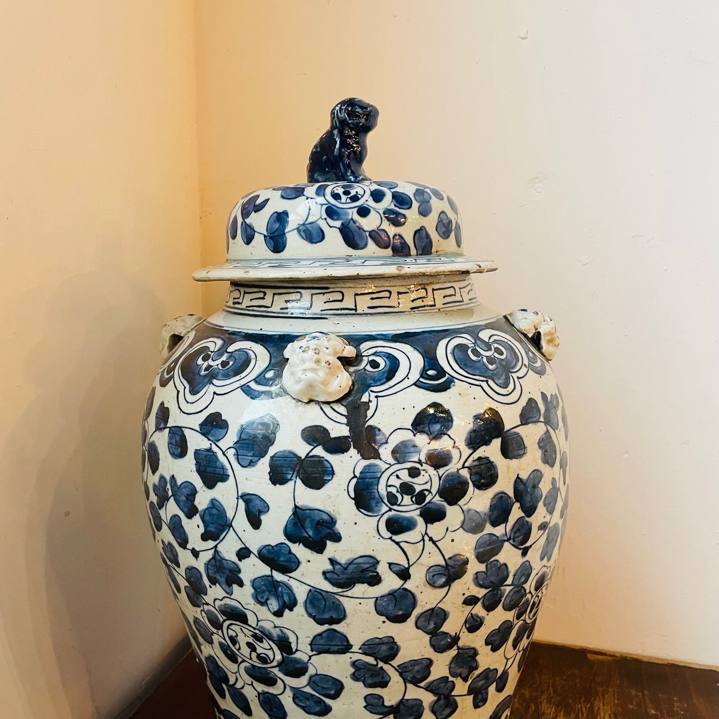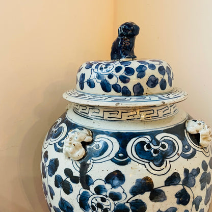 Extra Large Blue & White Temple Jar- Vintage