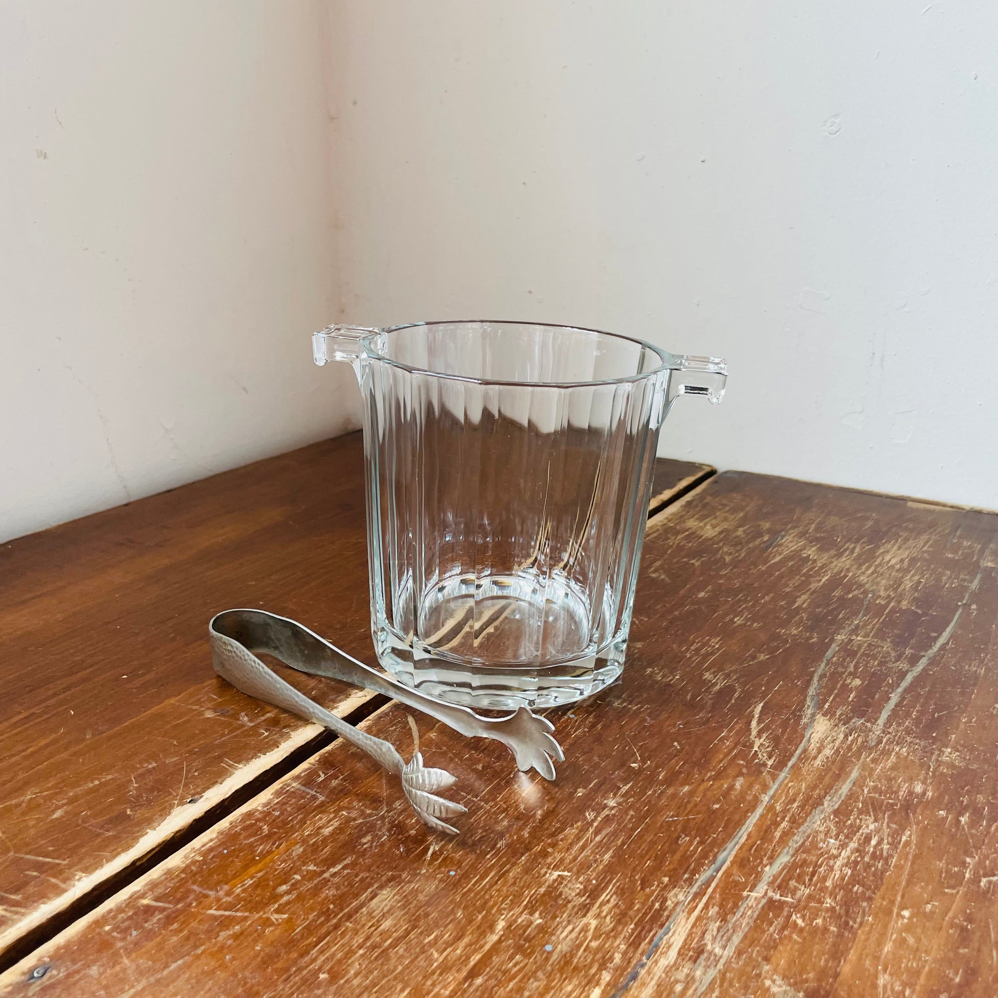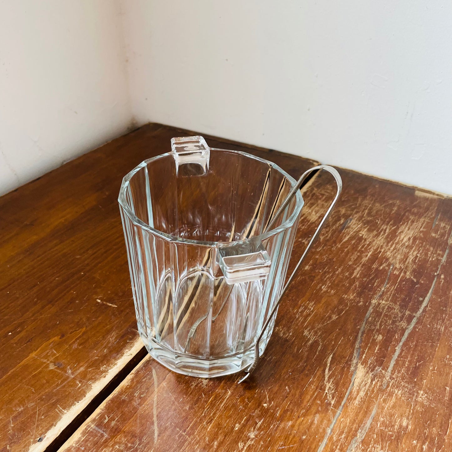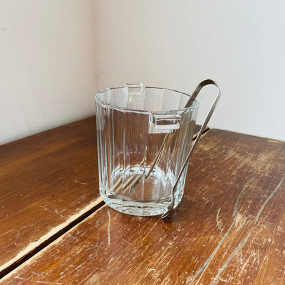 Glass Paneled Ice Bucket with Claw Tongs- Vintage