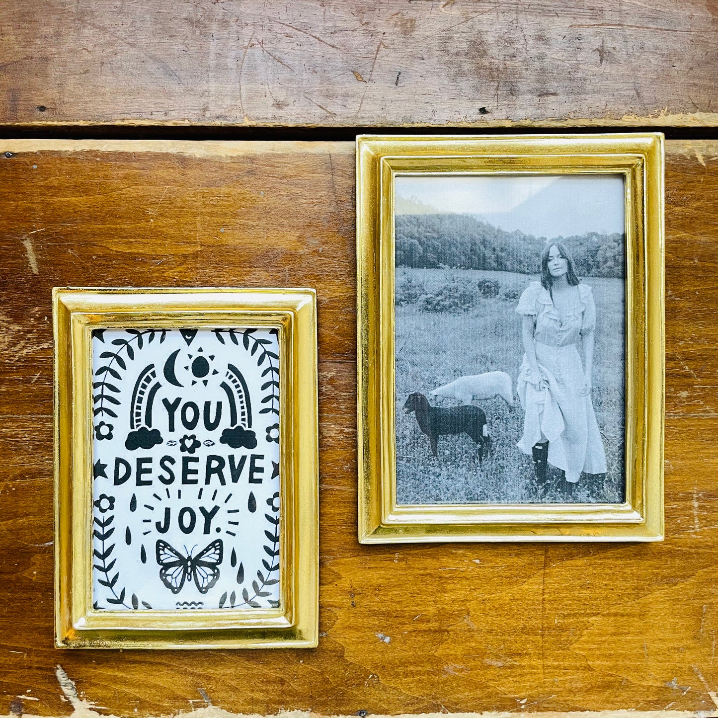 Simple and elegant. This timeless gold leaf frame will bring a little sparkle to any of your memories.