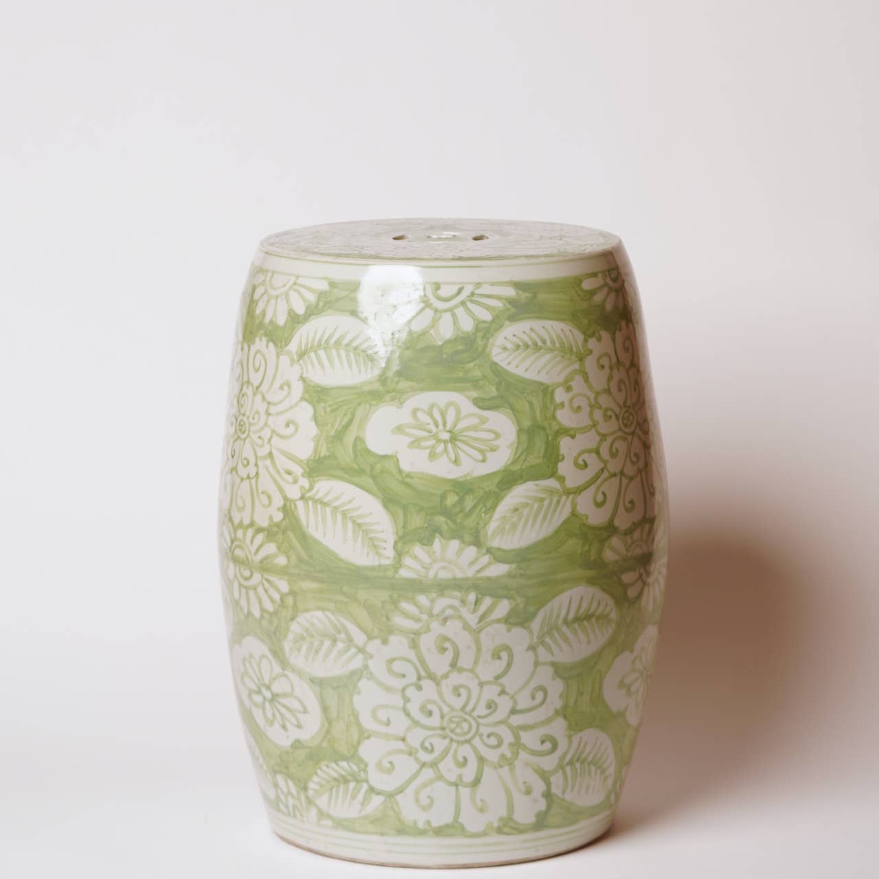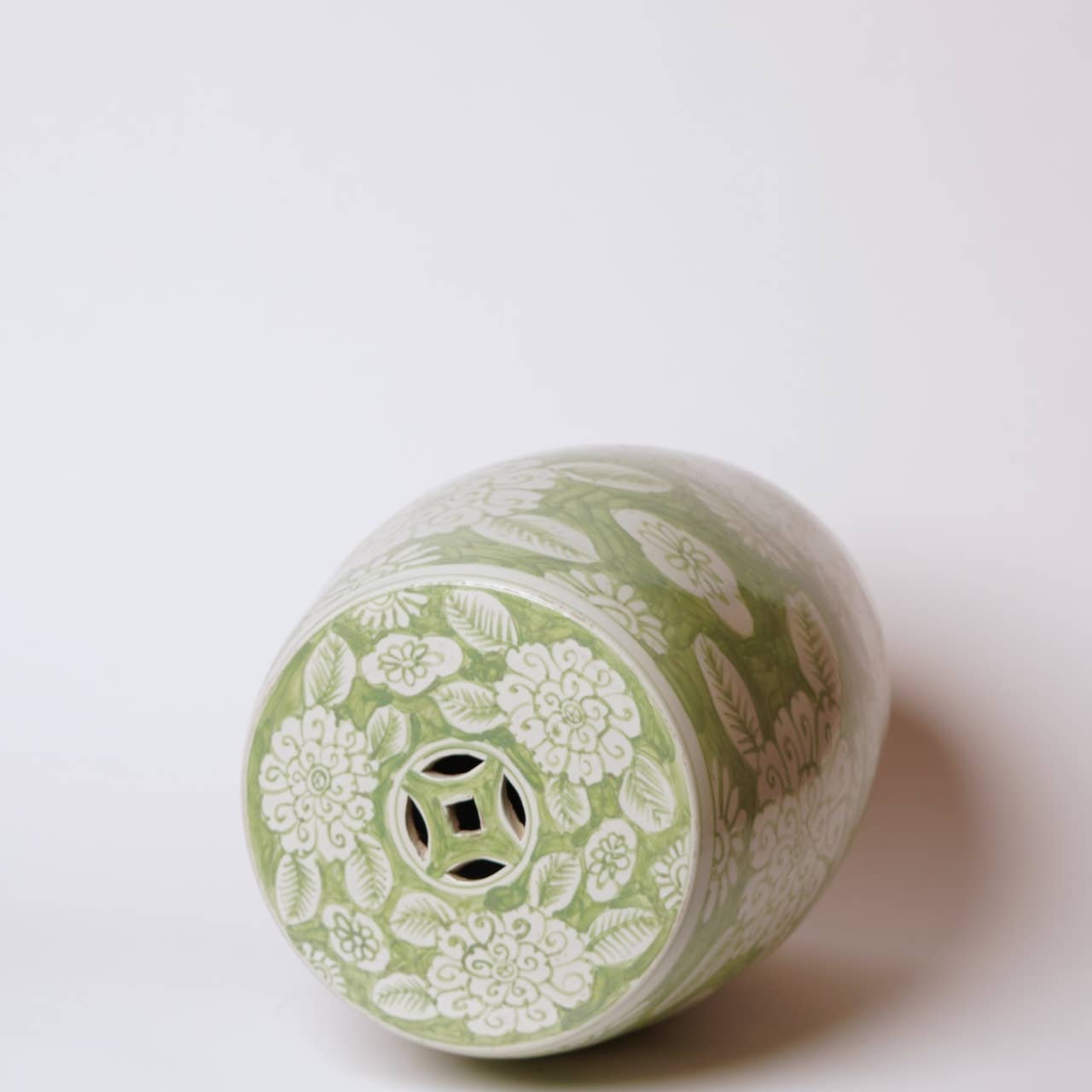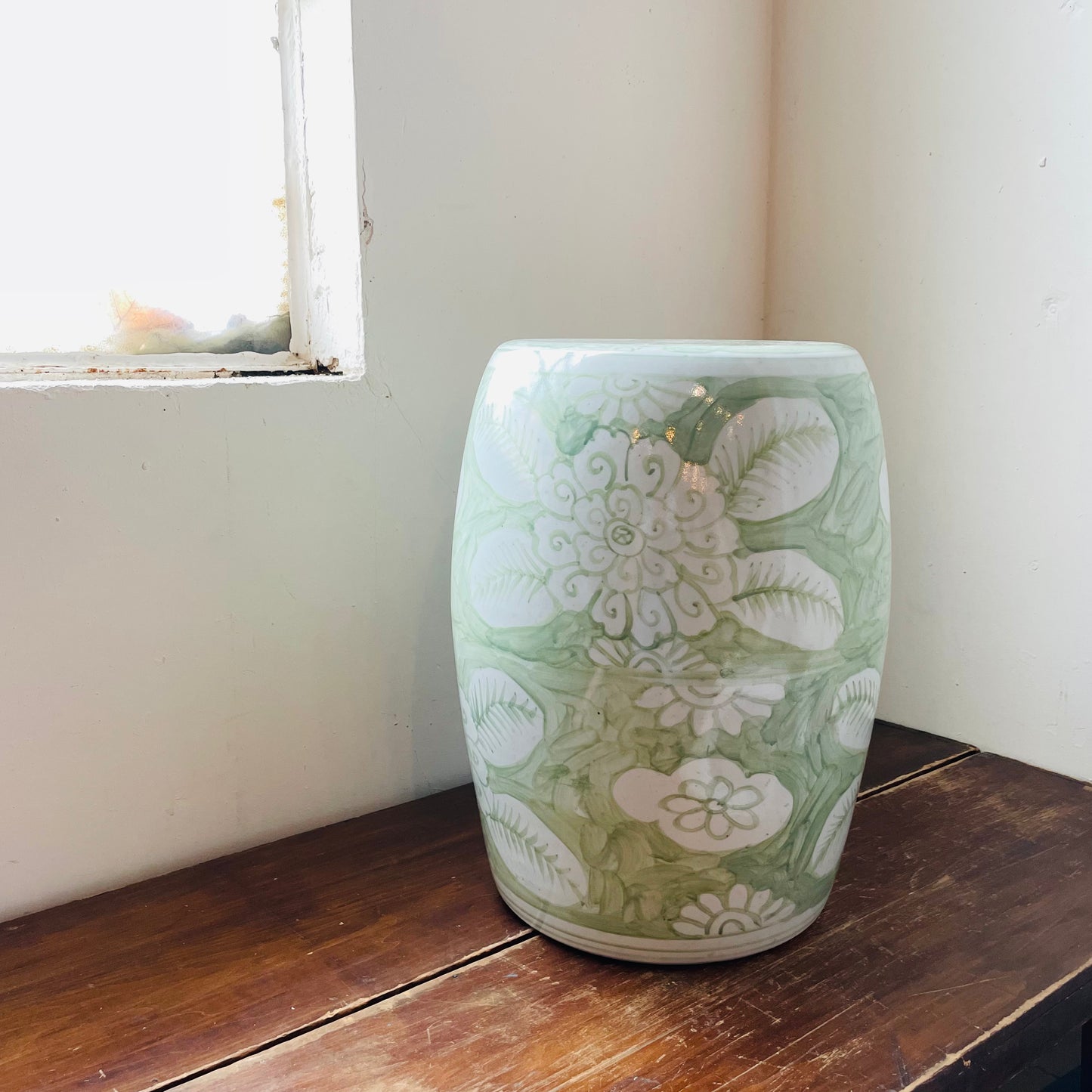 Cobalt Guild offers an assortment of blue and white porcelain vessels from the antiques markets of Jingdezhen, a town long distinguished by imperial patronage. This piece is a barrel-shaped porcelain garden seat with a rustic floral pattern,