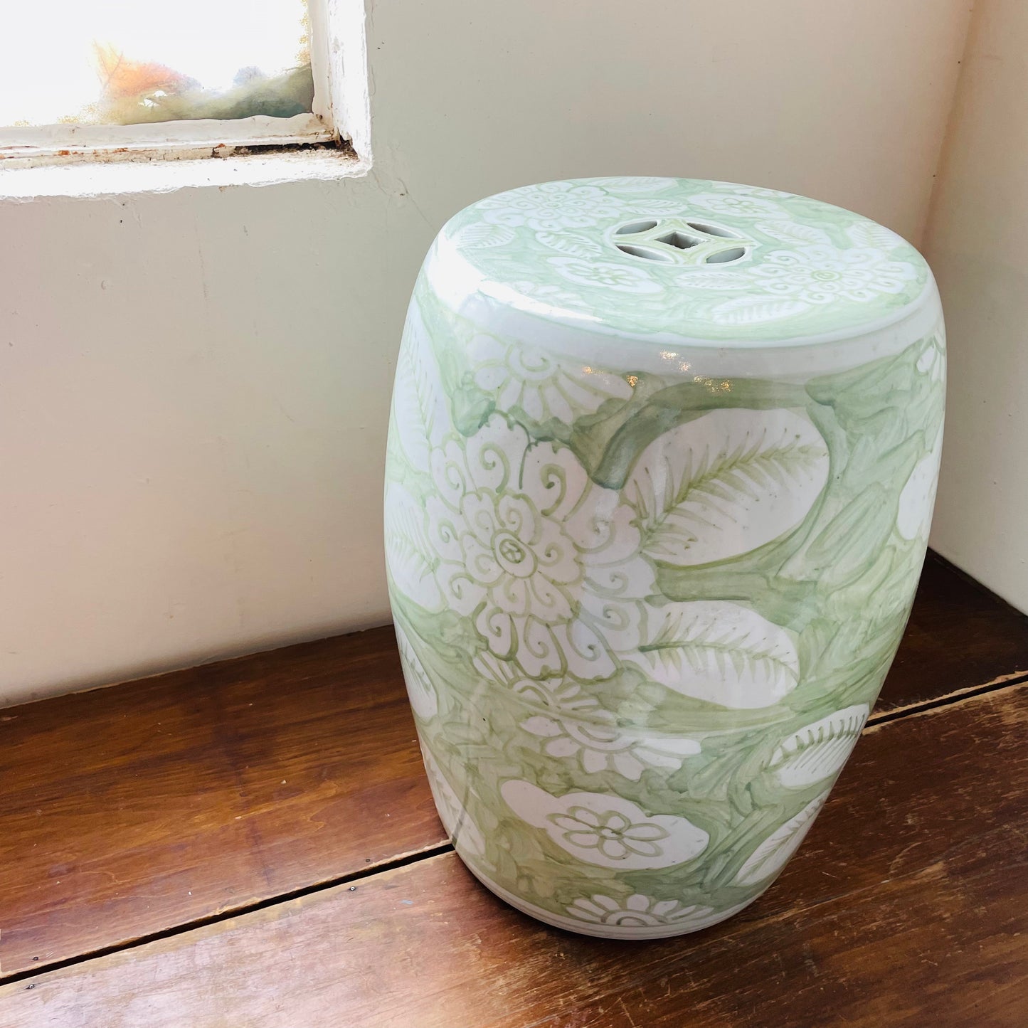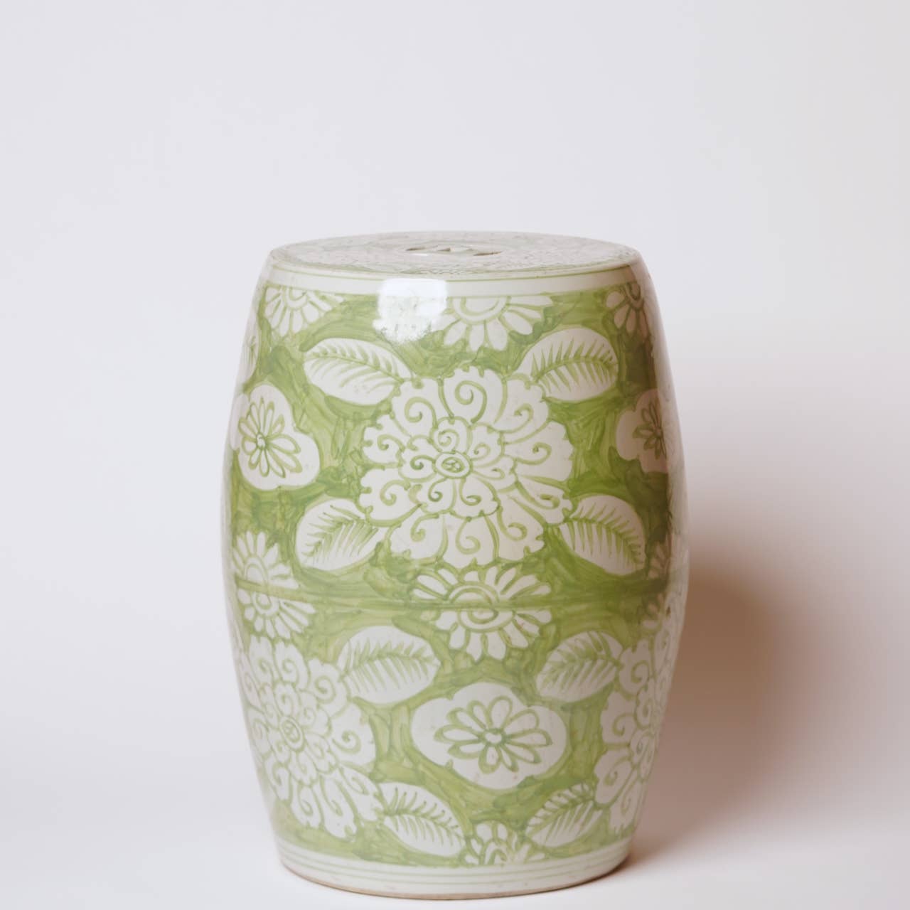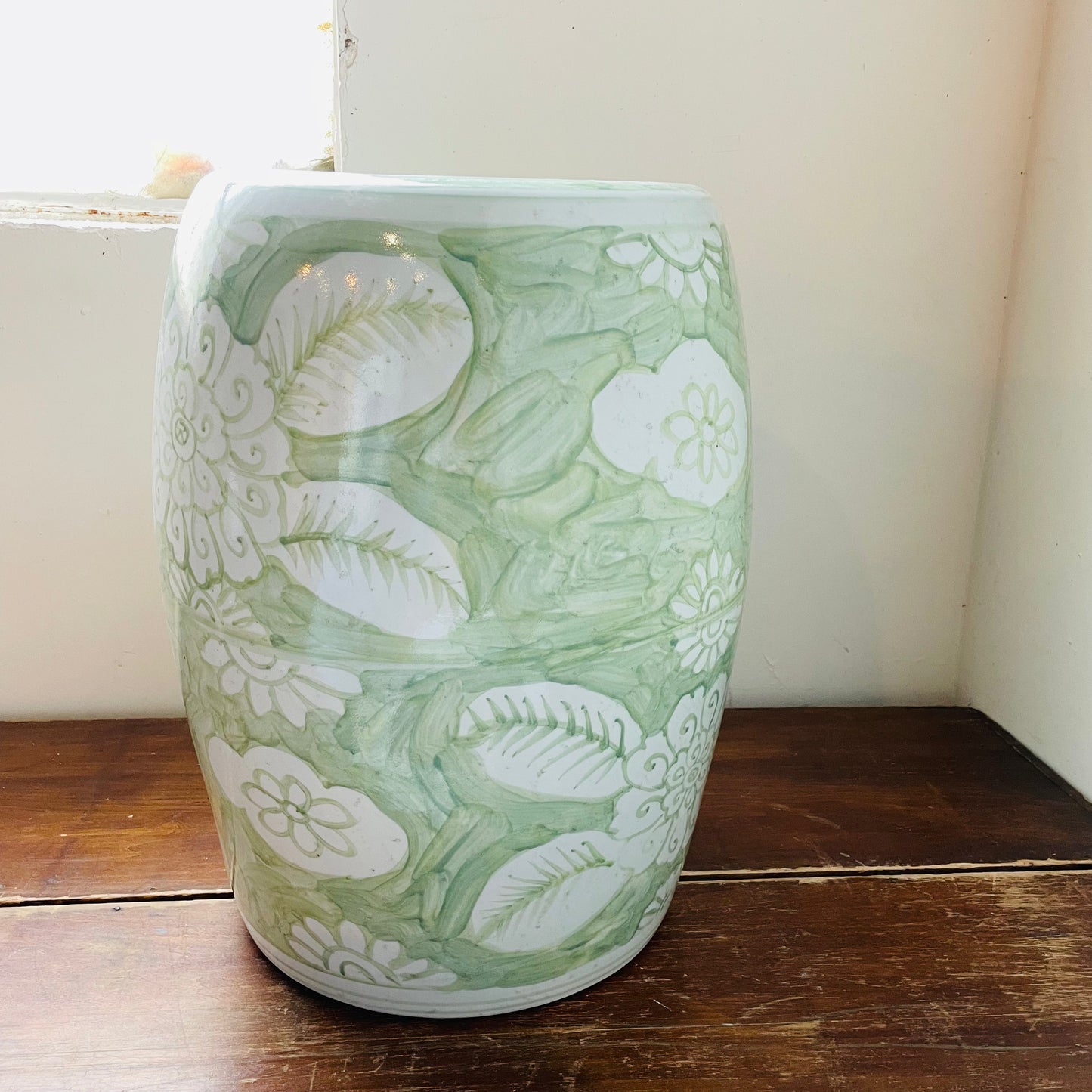 Cobalt Guild offers an assortment of blue and white porcelain vessels from the antiques markets of Jingdezhen, a town long distinguished by imperial patronage. This piece is a barrel-shaped porcelain garden seat with a rustic floral pattern,