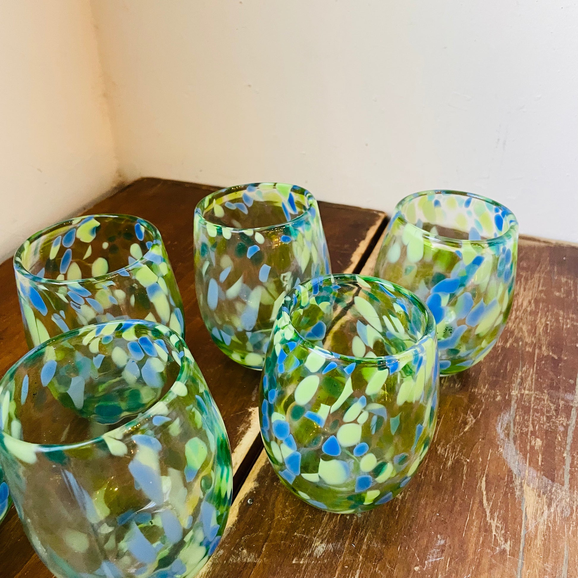 Green & Blue Confetti Stemless Wine Glasses- Set of 6