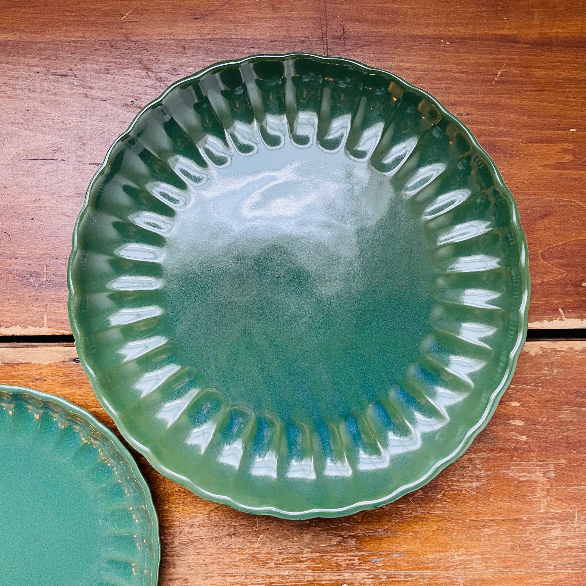 Green Stoneware Fluted Plate