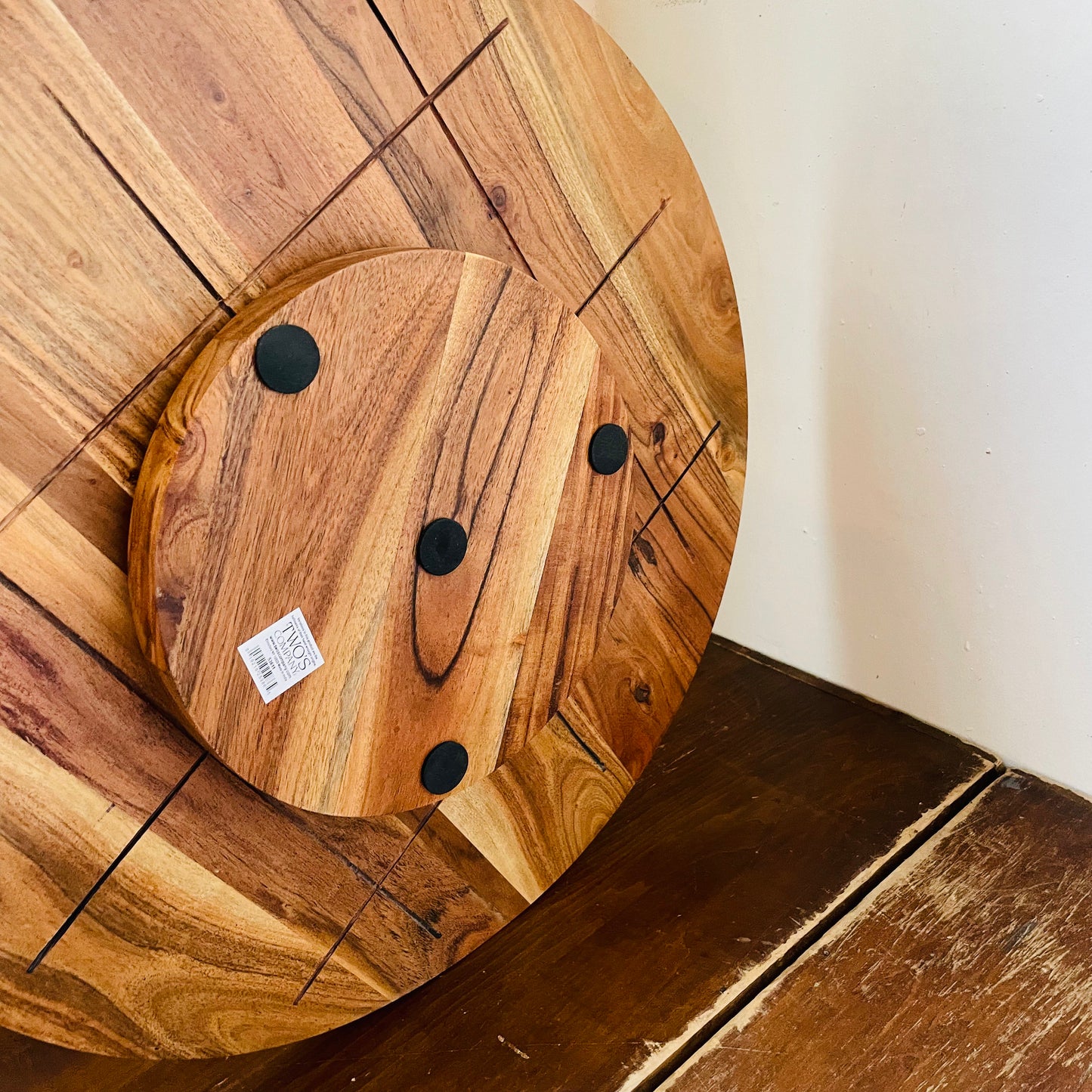 Everyone needs a rotating Charcuterie board for easy access from one side of the board to the next without hovering over all the goodies! Made of natural acacia wood with hand etched details along the edges. This beautiful board can be used for everyday entertaining or for any special occasion.