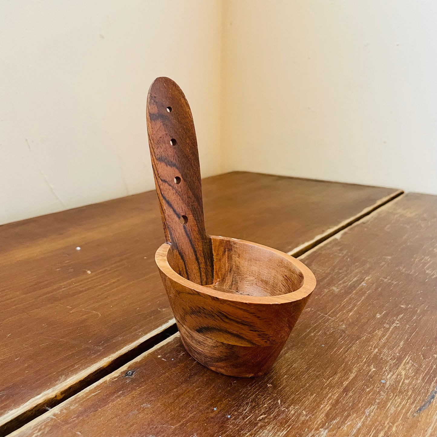 3-1/2" Round x 5-3/4"H Acacia Wood Herb Stripper, Natural