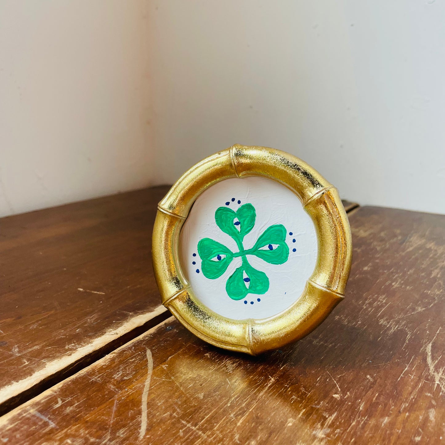 "I See Luck" in Round Gold Faux Bamboo Photo Frame
