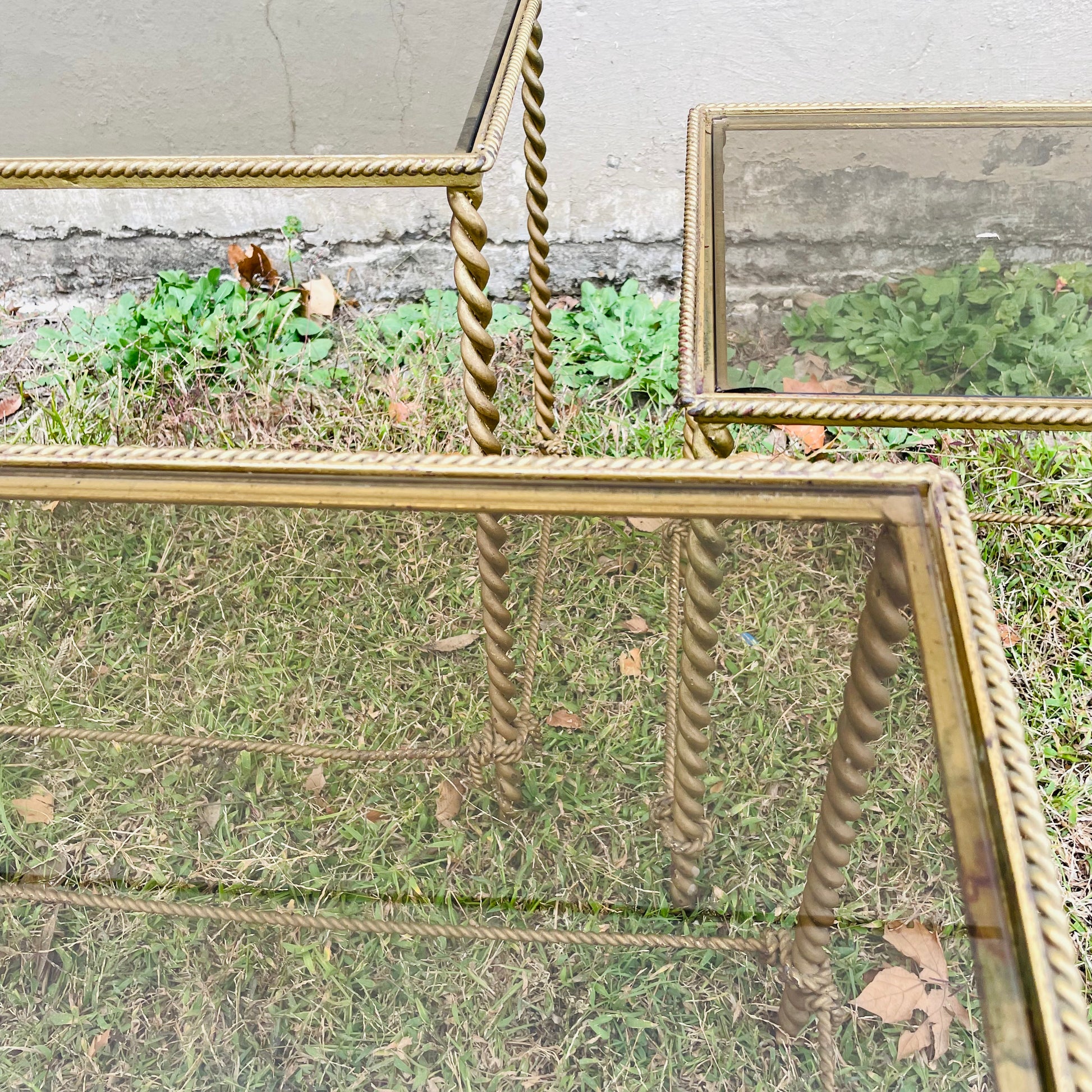Italian Hollywood Regency Rope Twist Nesting Tables- Vintage