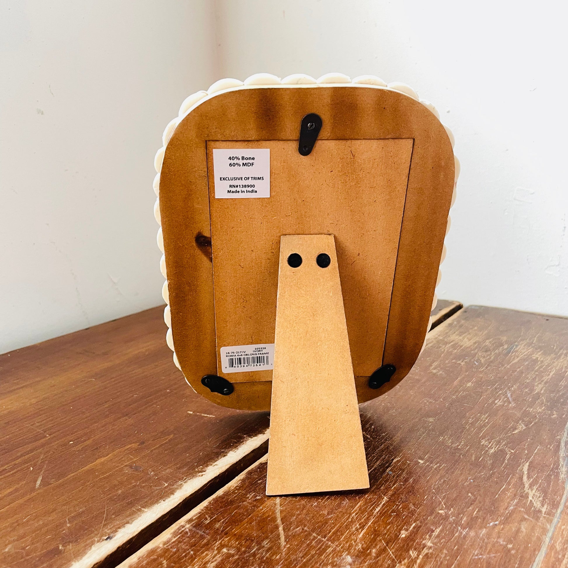The Roma 4" x 6" Oblong Picture Frame brings a fresh twist to classic framing with its uniquely rounded silhouette and elegant ivory finish. Made from natural materials, this frame features a tiled scallop pattern that gives it depth and dimension. Its oblong shape adds an unexpected yet refined touch to any tabletop or shelf display. Sized perfectly for 4" x 6" photos, it’s ready to highlight your most cherished memories.