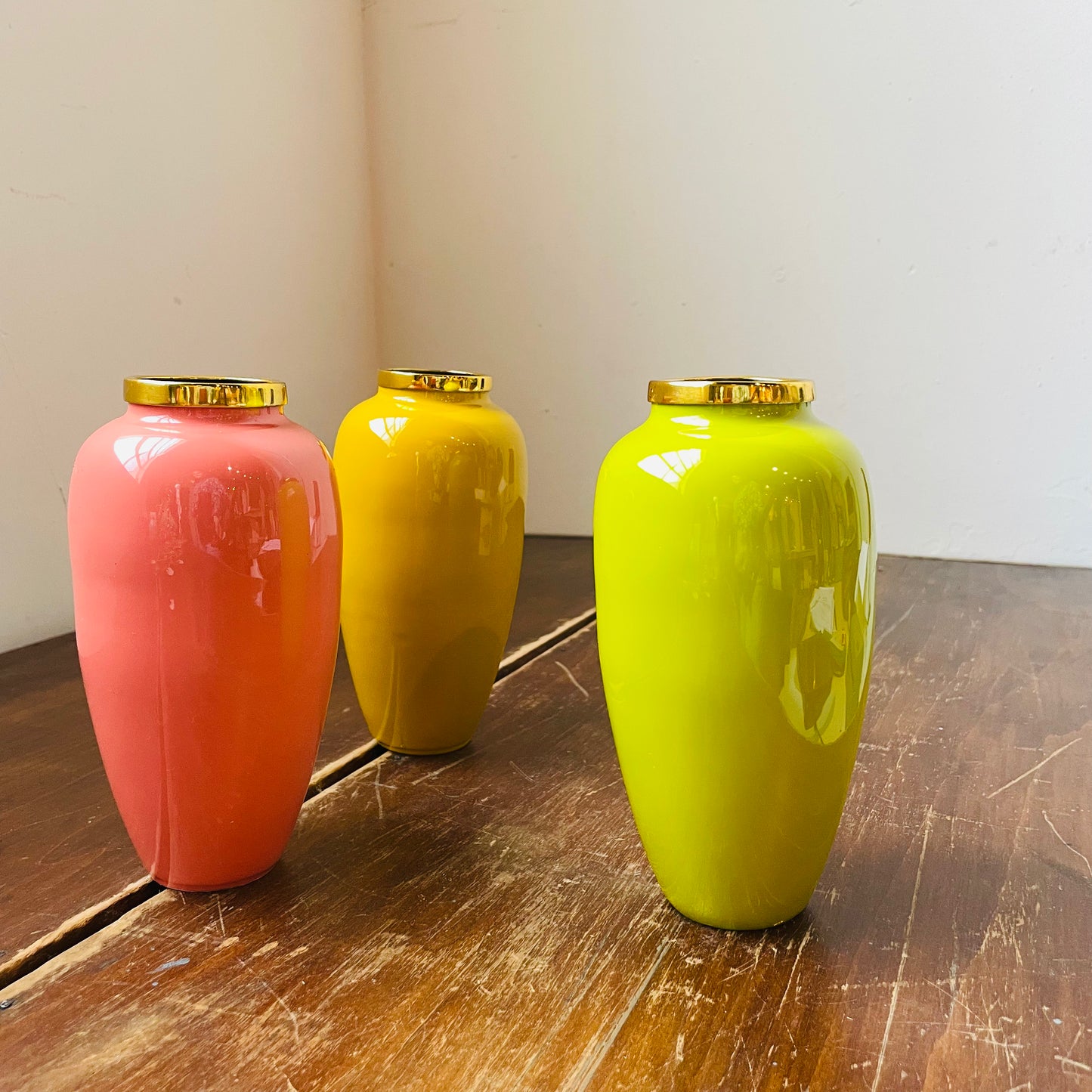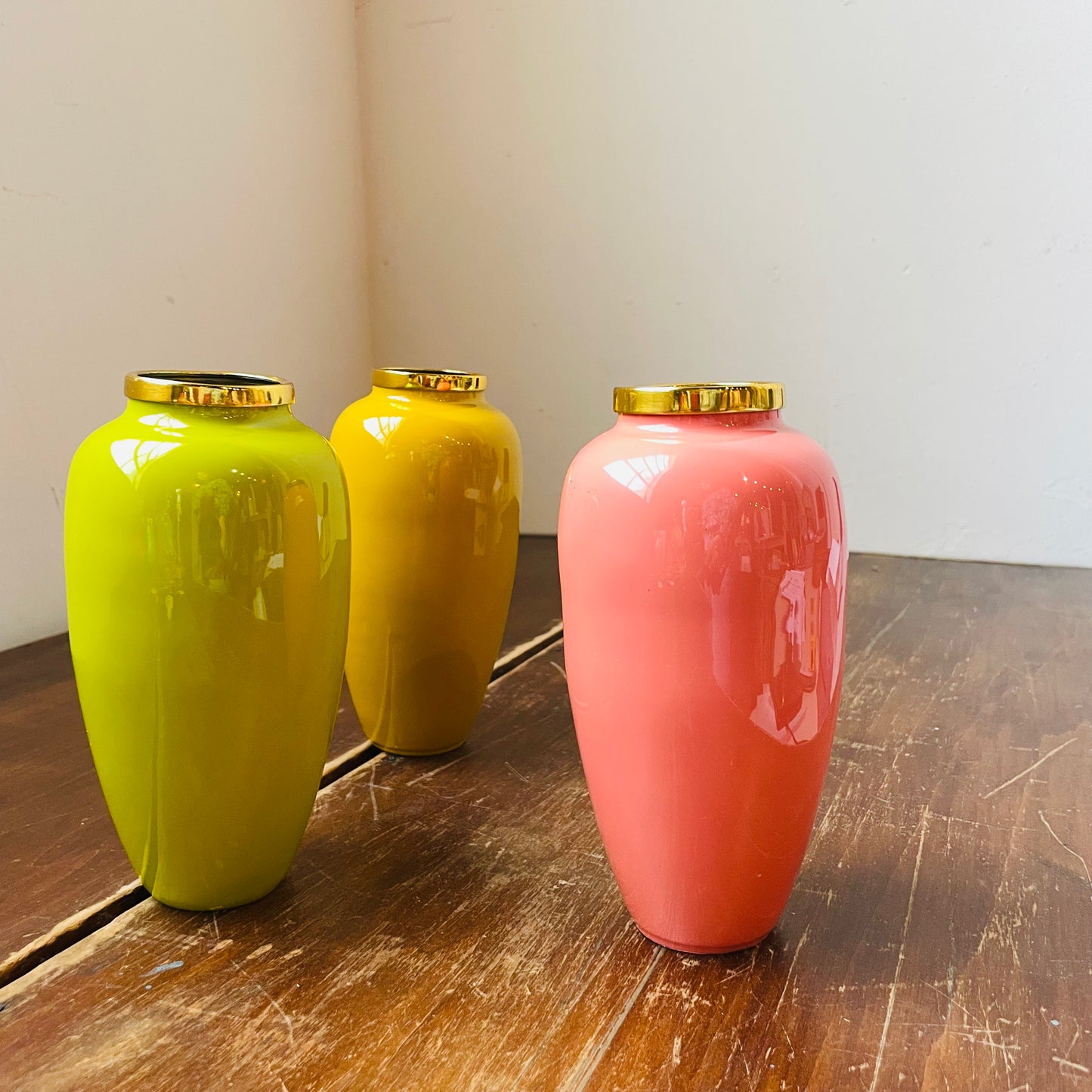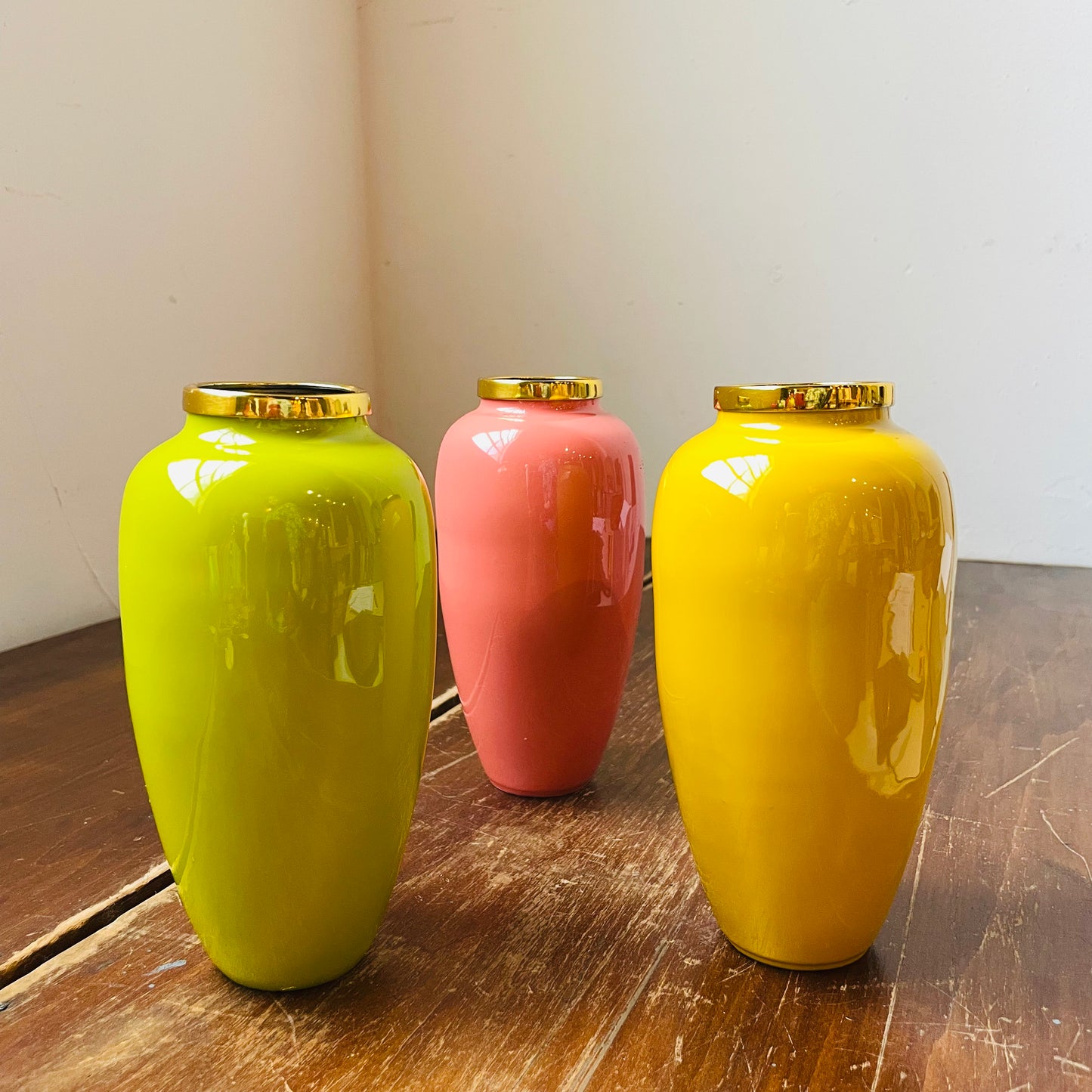 a pop of fun color this holiday with these enamel vases in varying color & sizes.