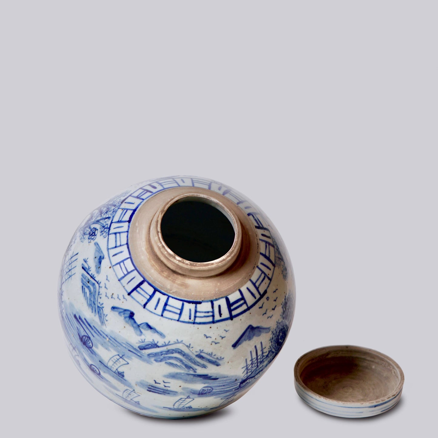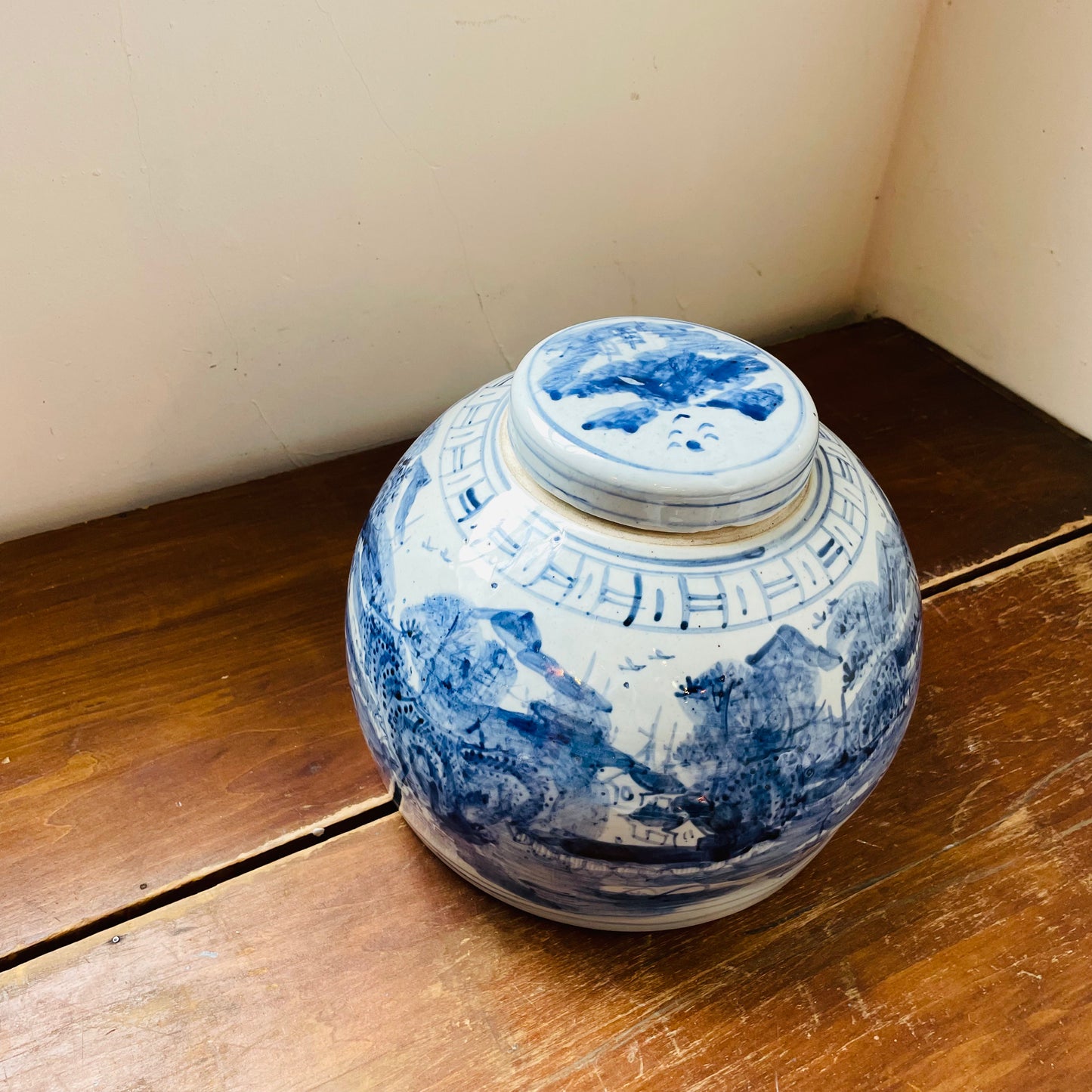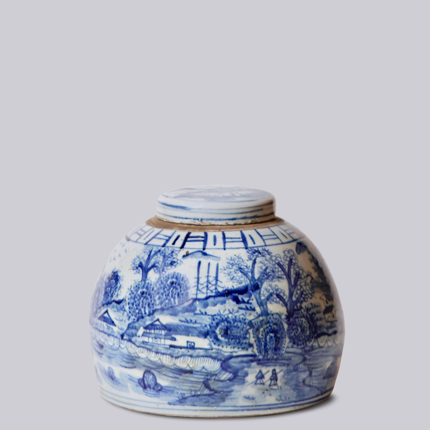 Lidded Blue and White Porcelain Landscape Storage Jar