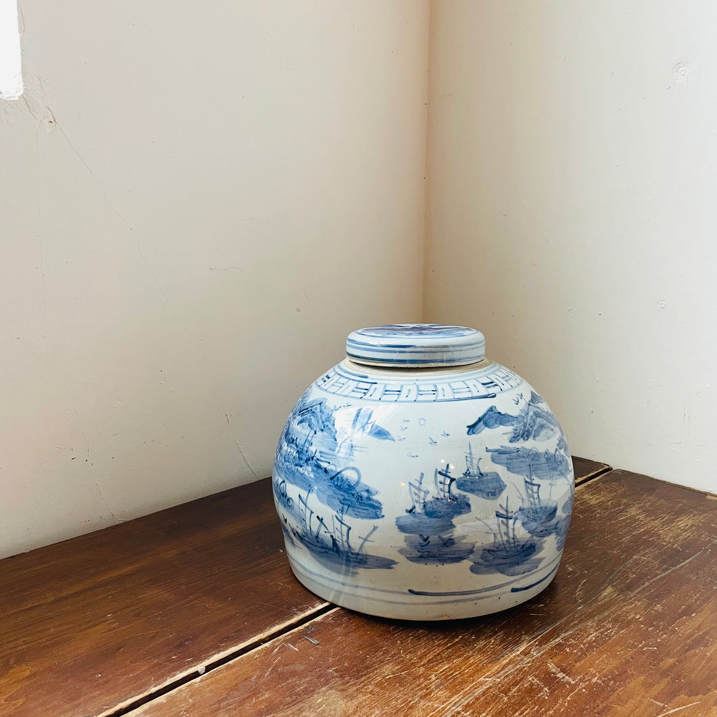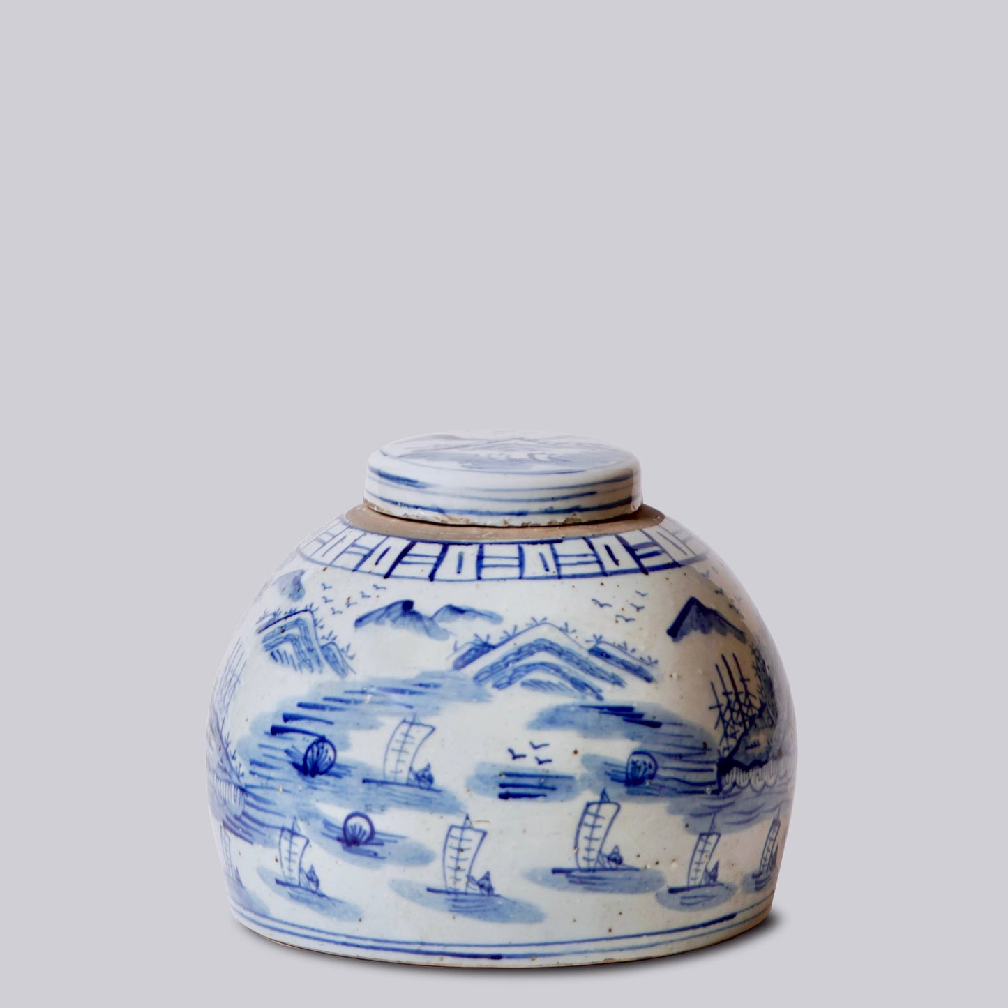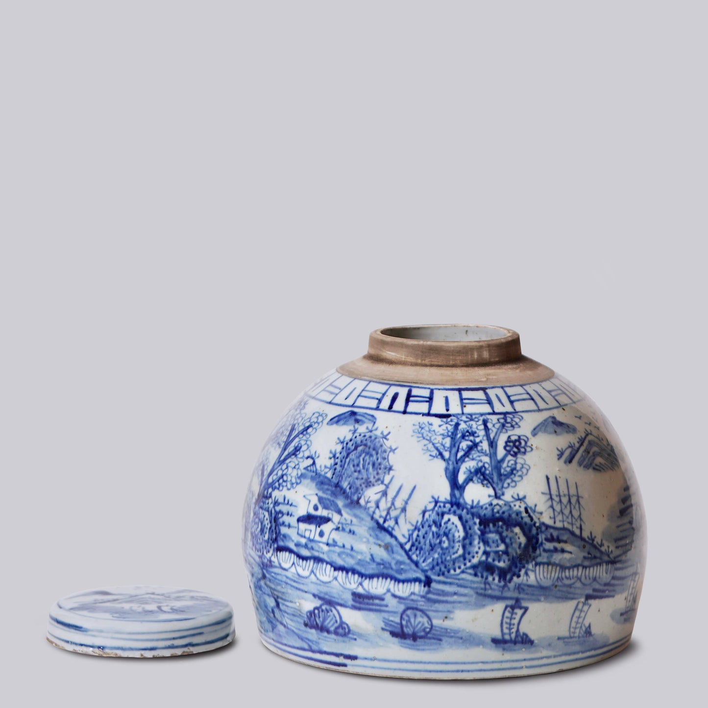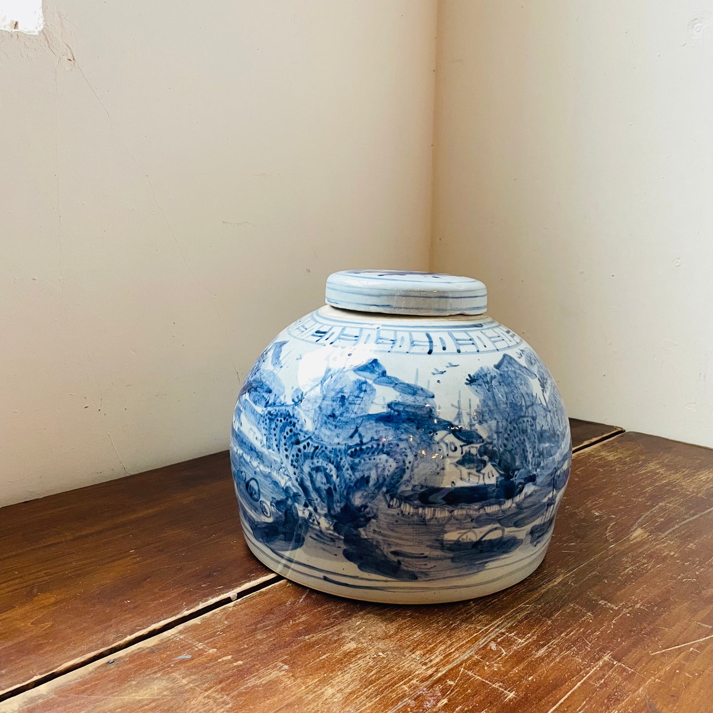 Lidded Blue and White Porcelain Landscape Storage Jar