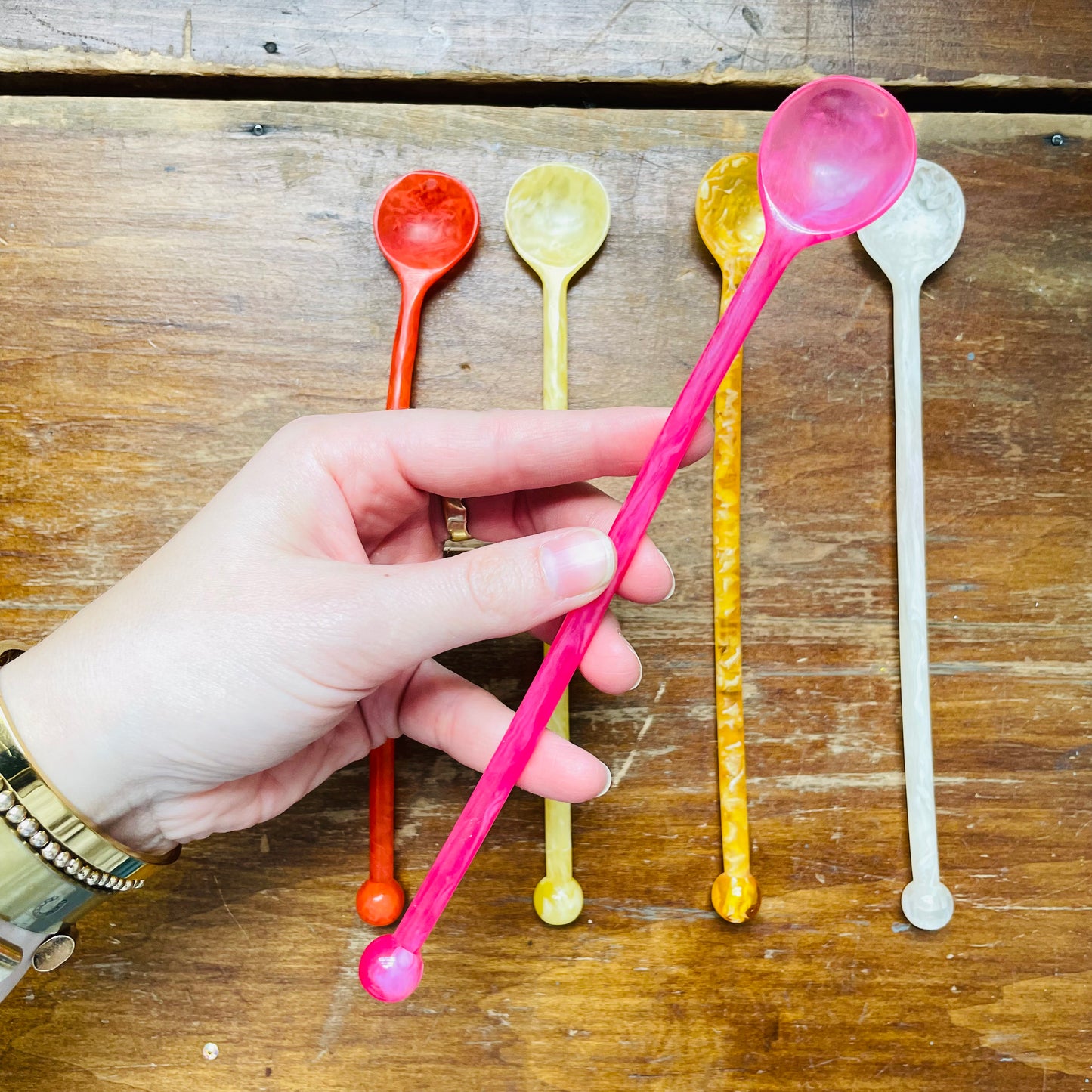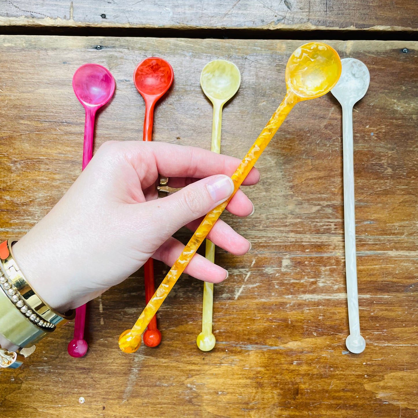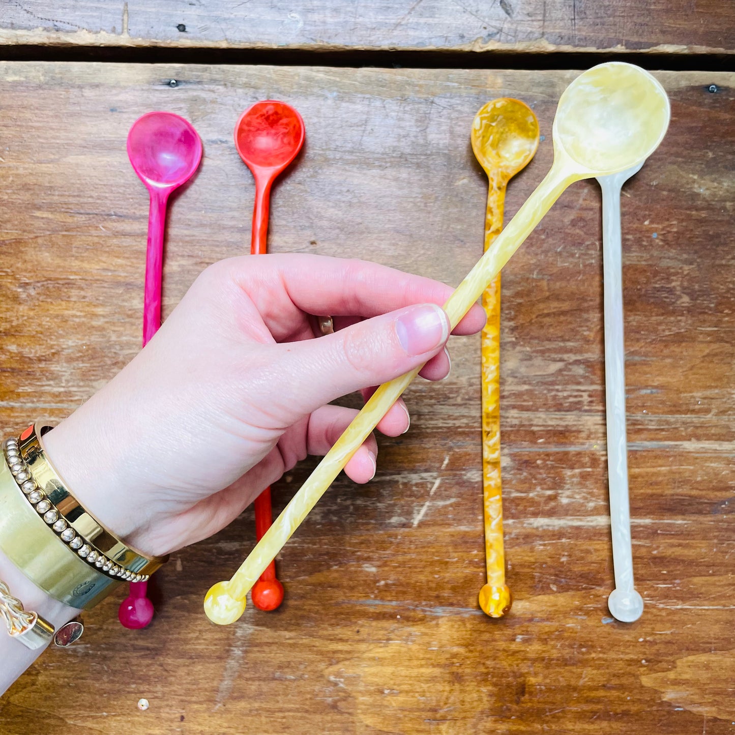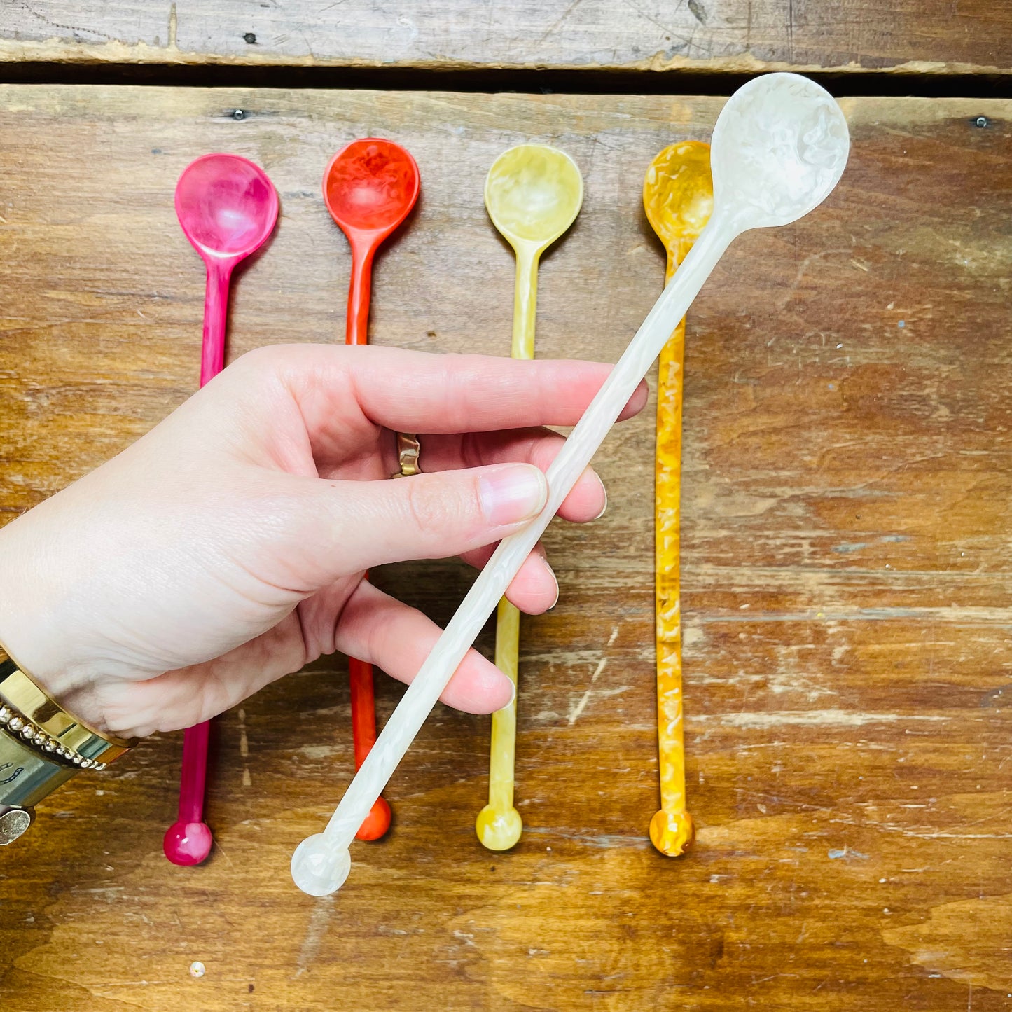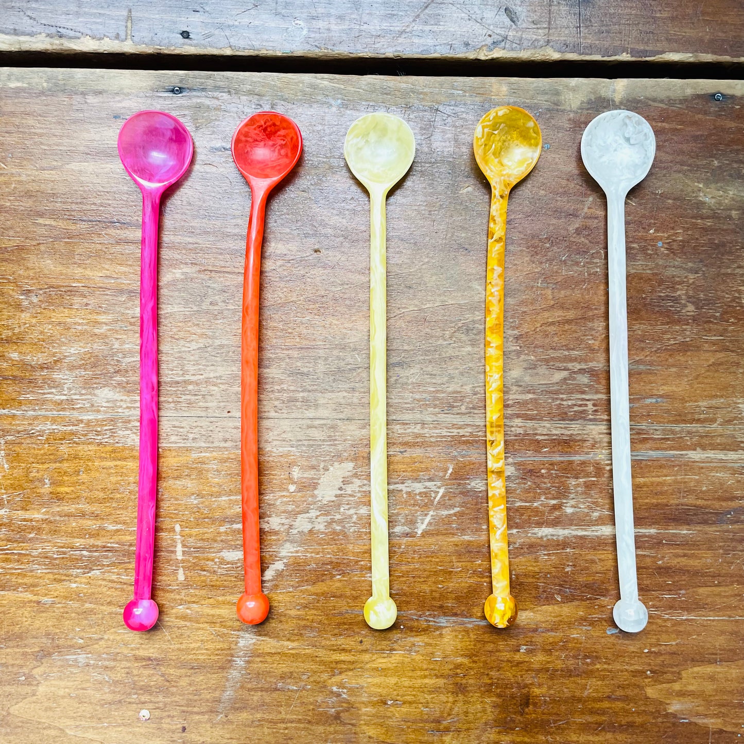 8-1/4"L Resin Cocktail Spoon, 5 Marbled Colors
