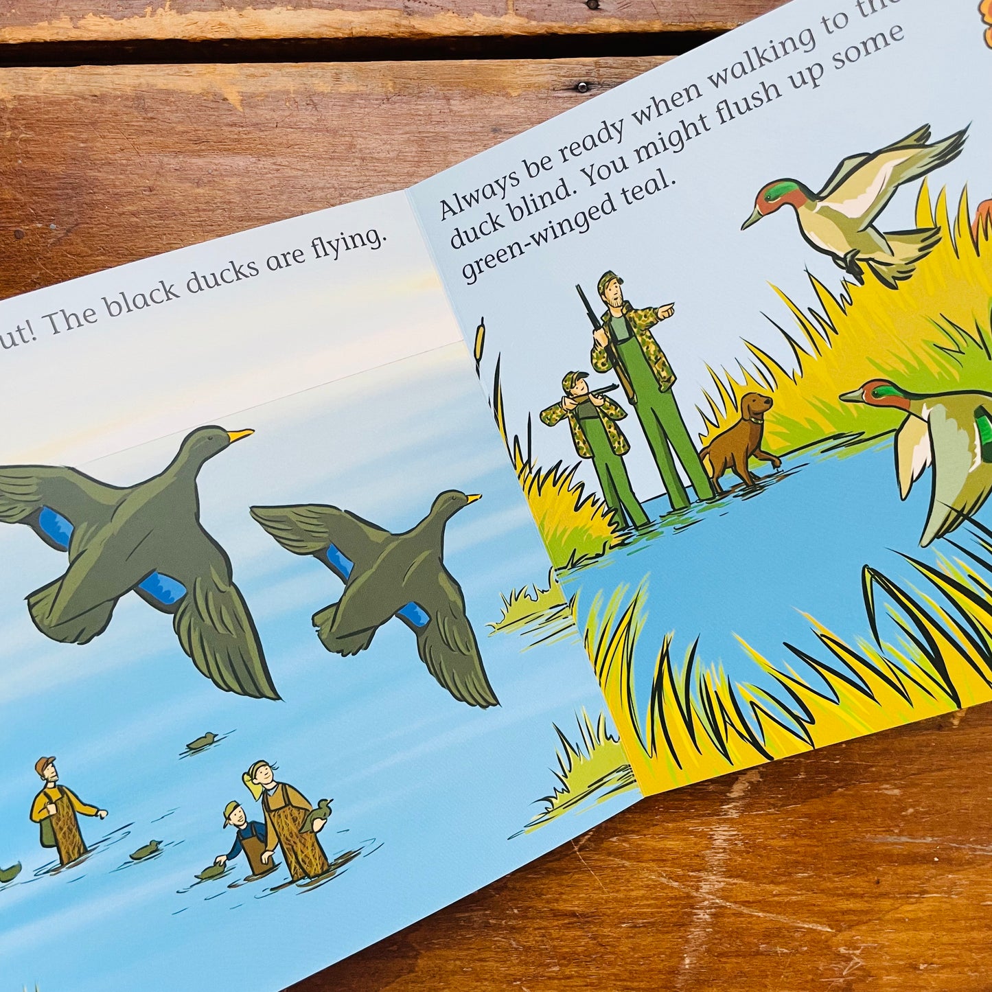 “Sit in the duck blind and blow your call. Be still and wait for cupped up mallards to come in.”