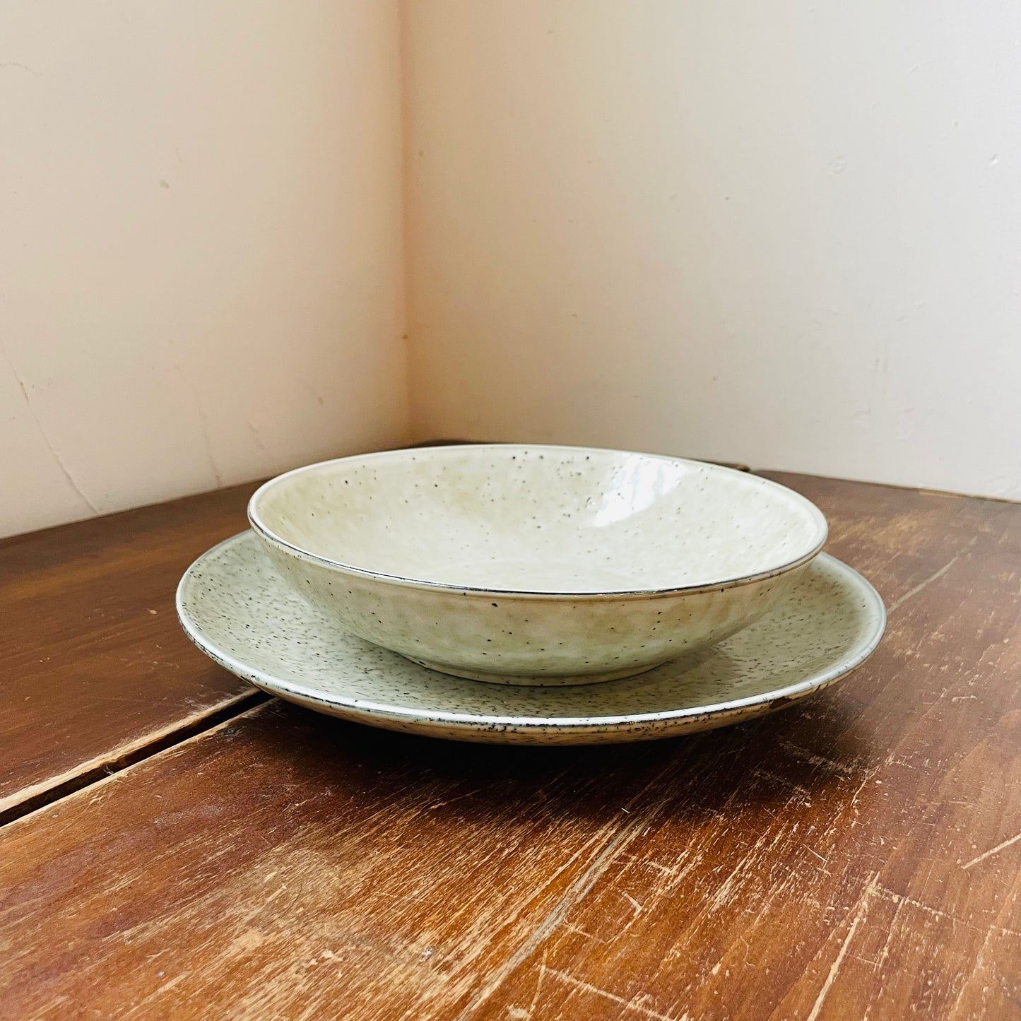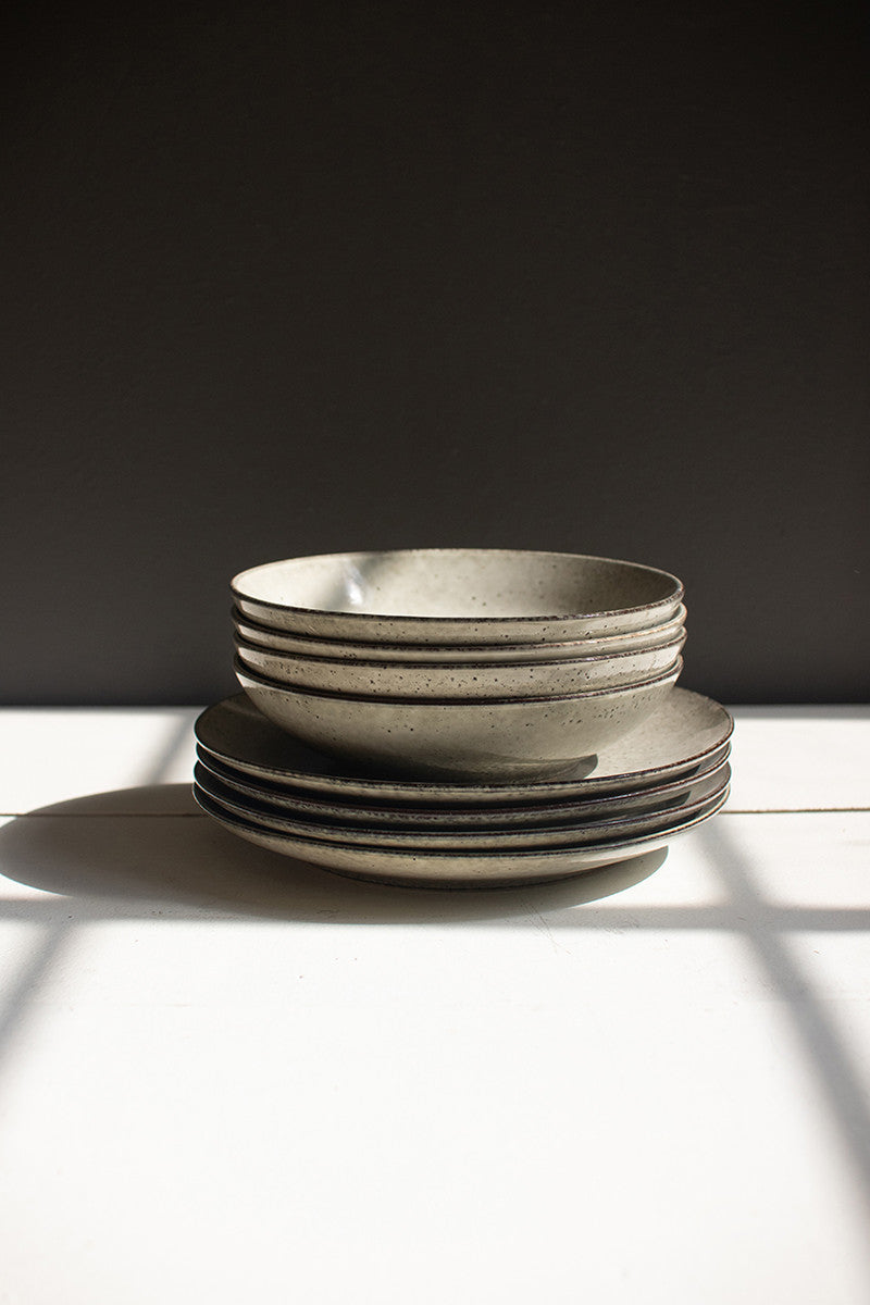 This set of two will gratify your guests and satisfy your sweetheart. These gorgeous oatmeal-colored dishes come in a set of 4 plates or 4 bowls. Vary your table with these perfectly imperfect dishes.