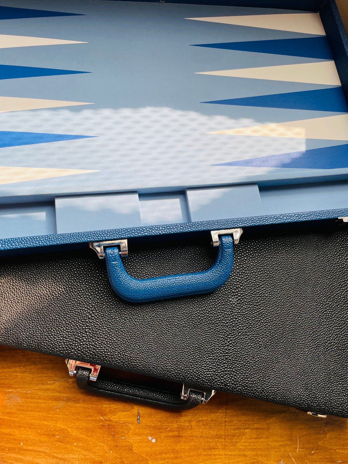 This gorgeous backgammon set has elegant style and quality craftsmanship. It includes high quality playing pieces, with a sturdy rugged handle and a strong stingray frame. Easy to store and clean, it is perfect for indoor, and outdoor family fun.