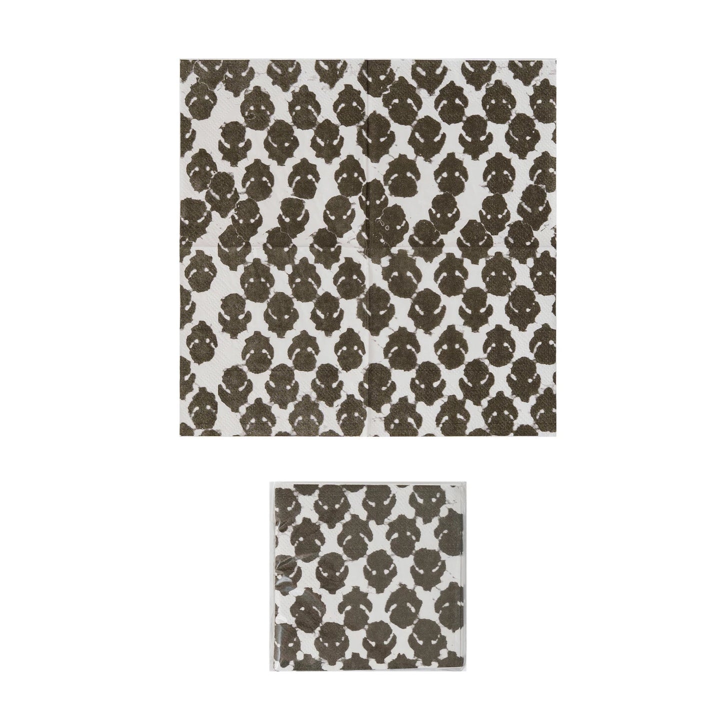 4" Square Paper Cocktail Napkins w/ Floral Pattern, Cream Color & Black (Contains 50 Folded Pieces)