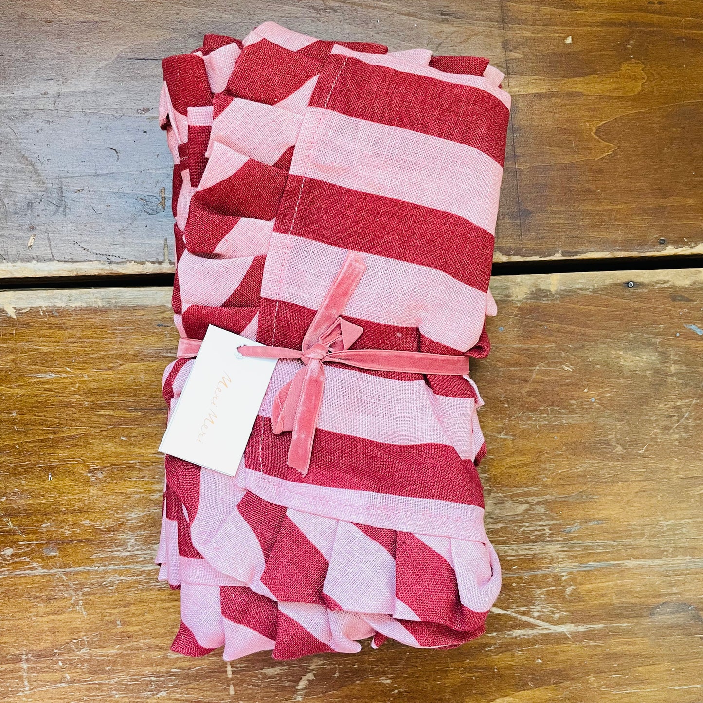 Pink & Red Stripe Ruffle Fabric Napkins- Set of 4
