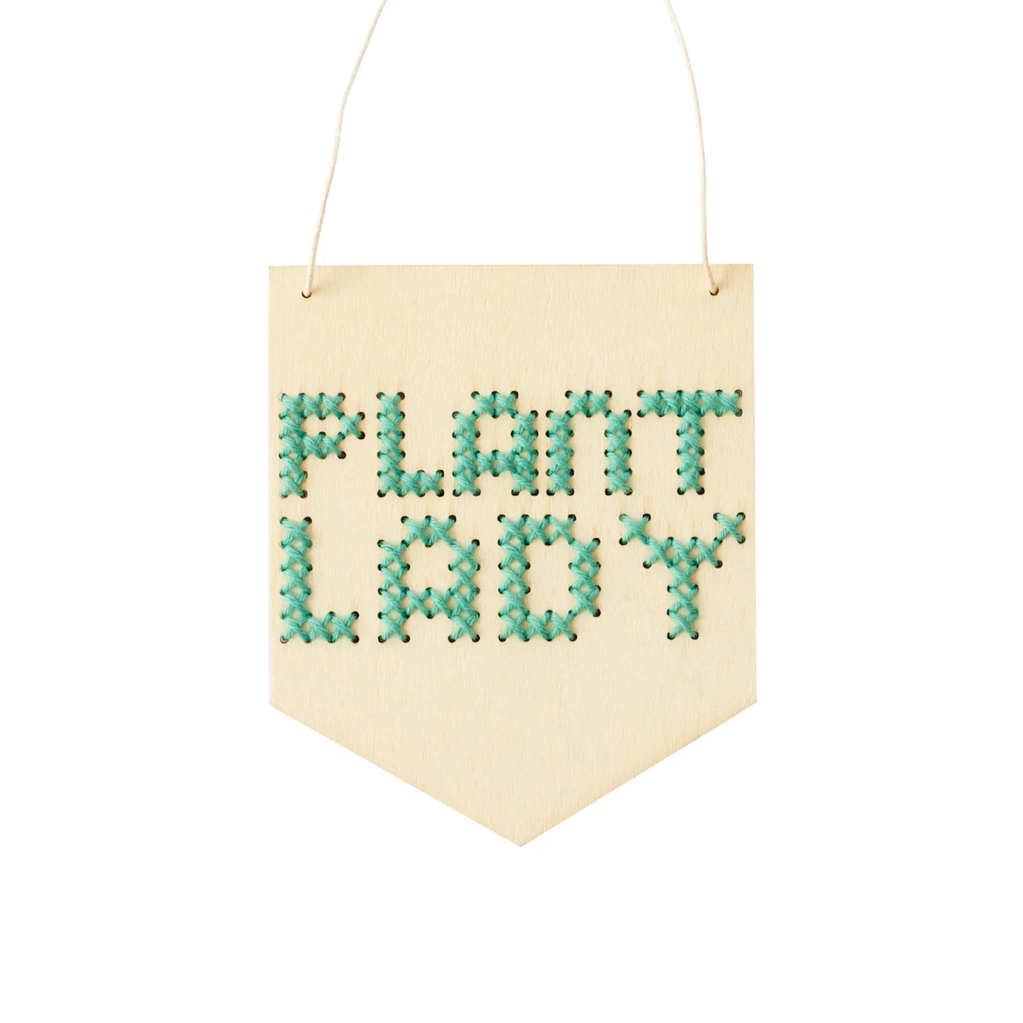 With a nod to the past and traditional embroidery techniques this cross stitch kit is not like anything you’ve seen before! With the pattern laser cut on to plywood, instead of stitching into fabric, you are stitching on to a wooden board! This board spells out ‘Plant Lady’.