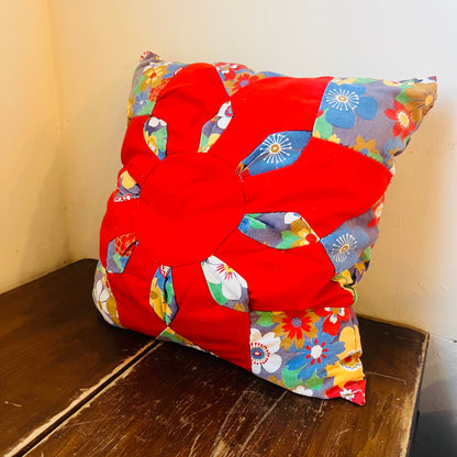 Red Sun Quilt Pillow- Vintage