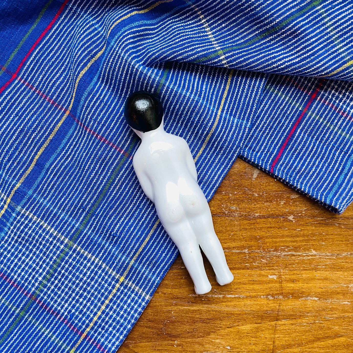 Based off a vintage porcelain girl figurine, left white except for minor accenting features and with unforgettable expressions Rico is the perfect curious collectors pieces to display on a shelf, a desk, or anywhere else.
