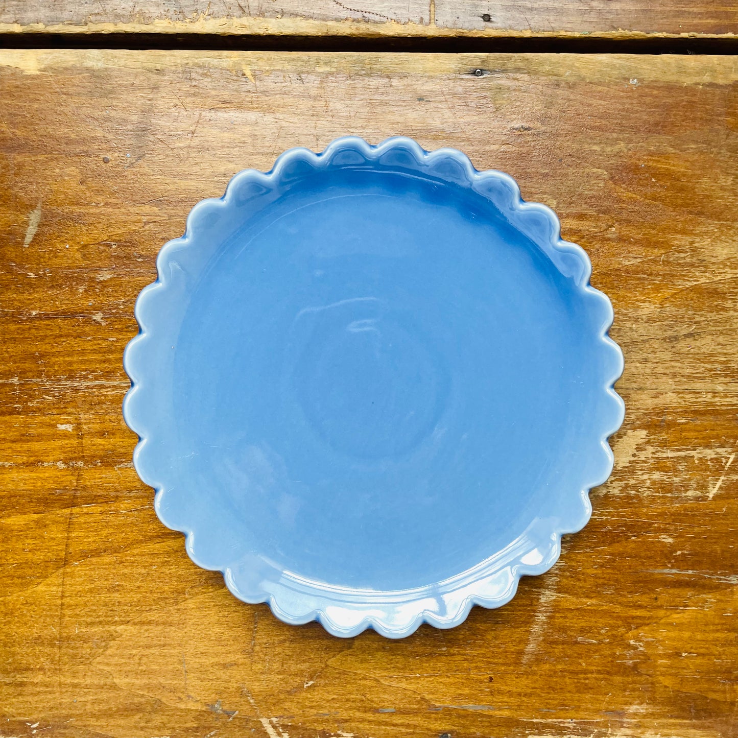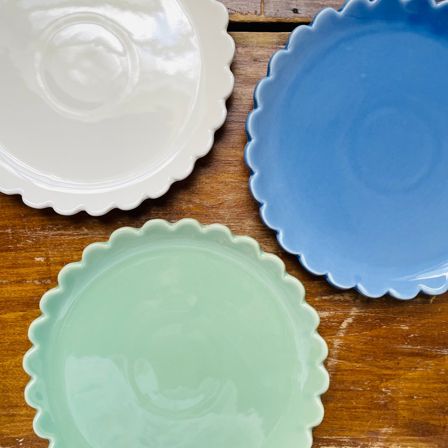8" Round Stoneware Plate w/ Scalloped Edge, 3 Colors