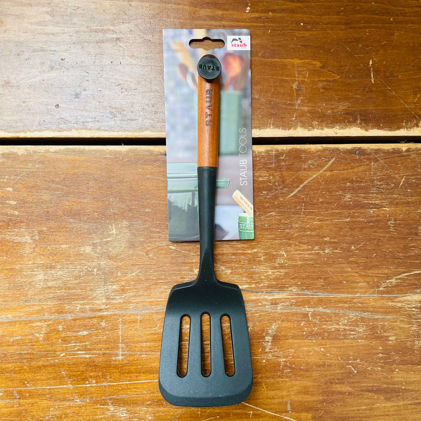 This silicone slotted turner is perfectly angled for lifting sandwiches and picking up veggies from a sheet tray. Thanks to the handy slots that strain grease away, you can serve juicy burgers and bacon with no mess. STAUB silicone tools make the perfect registry or hostess gift for newlyweds, new homeowners, or the long-time STAUB fan.