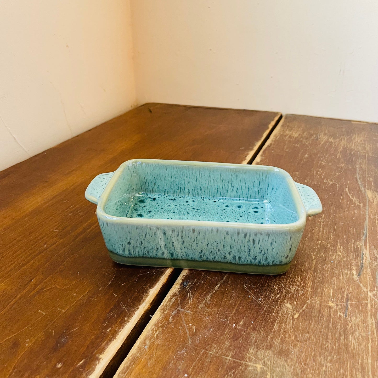 8-1/4"L x 4-3/4"W x 1-3/4"H 2-1/2 Cup Stoneware Baker, Reactive Glaze, 2 Colors (Each One Will Vary)