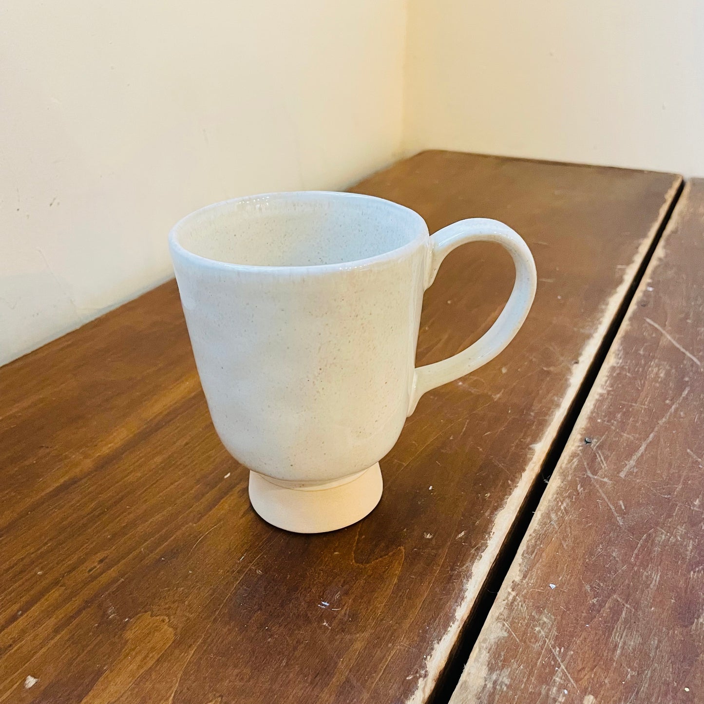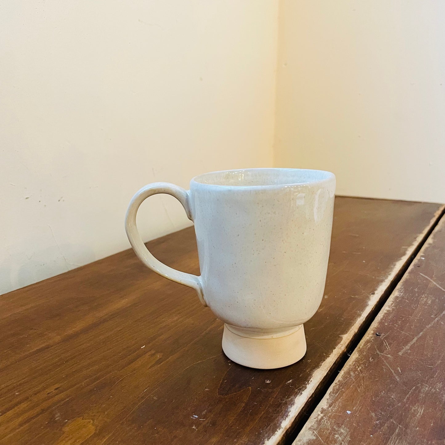 3-1/2" Round x 4-3/4"H 12 oz. Stoneware Footed Mug, Reactive Glaze, Cream Color & Unglazed (Each One Will Vary)