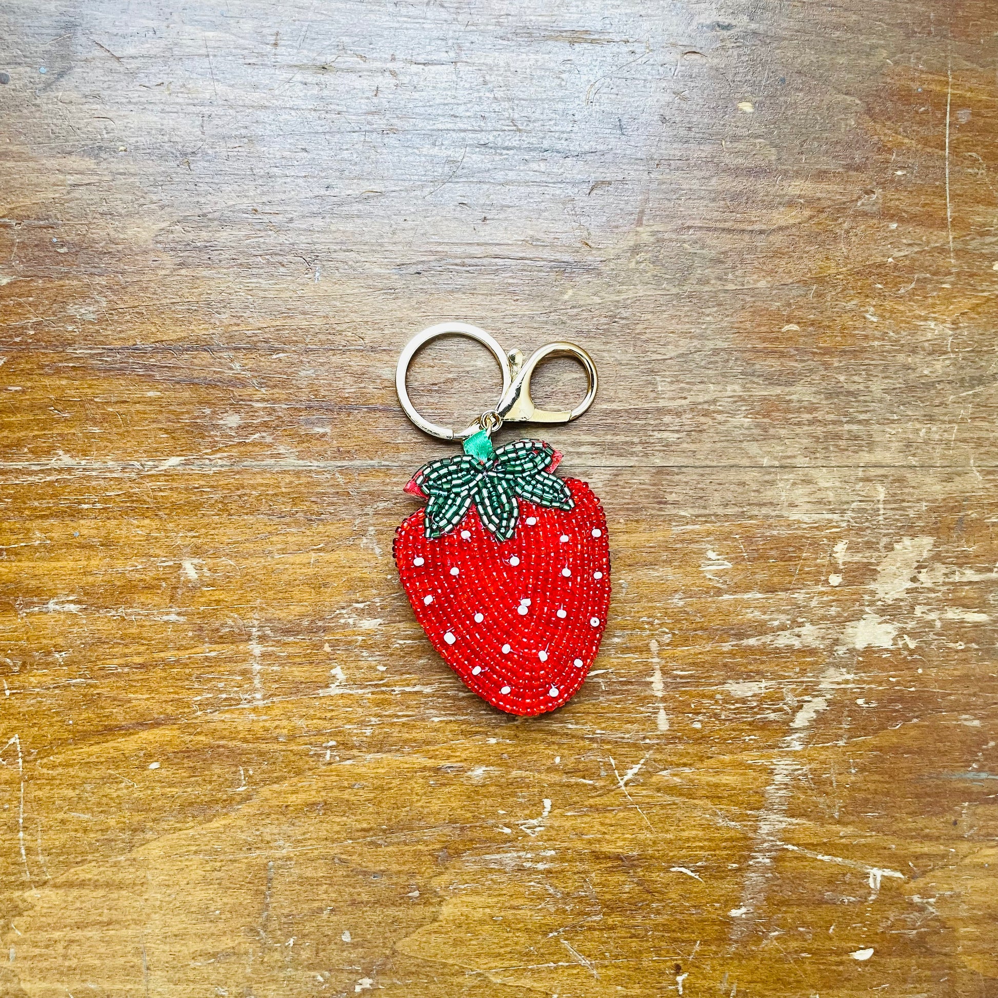 Add a burst of berry-sweet charm to your accessories with our Strawberry Beaded Bag Charm/Key Ring. Designed with shimmering red and green beads, this juicy accent brings a playful pop to any handbag or keychain. It features both a gold key ring and clasp hook, making it easy to attach wherever you need a little extra flair. Whether you're heading to brunch or just running errands, this strawberry accessory is ripe for the picking!