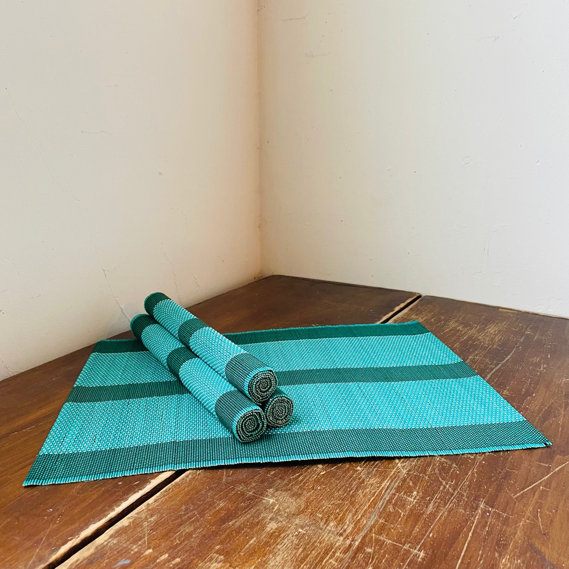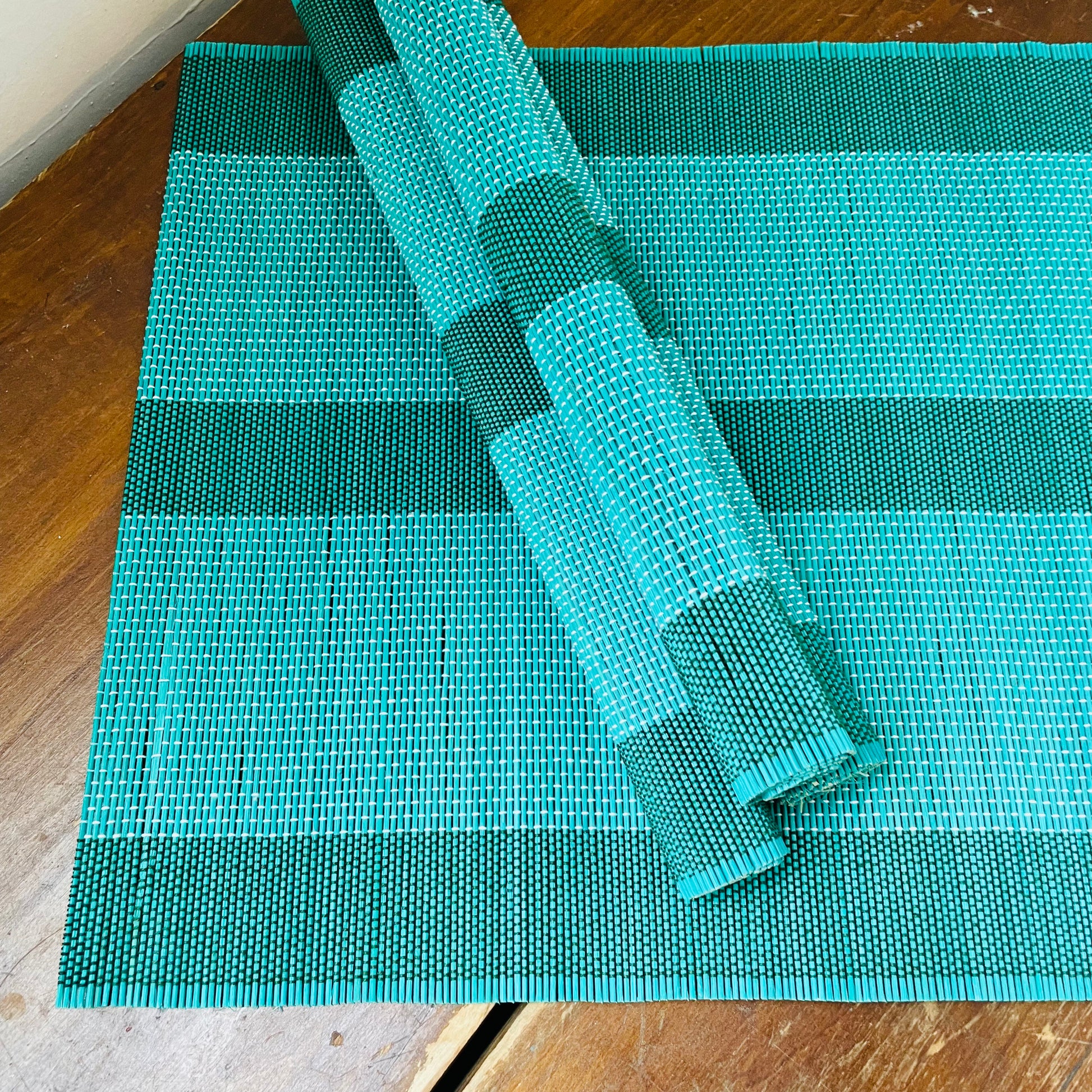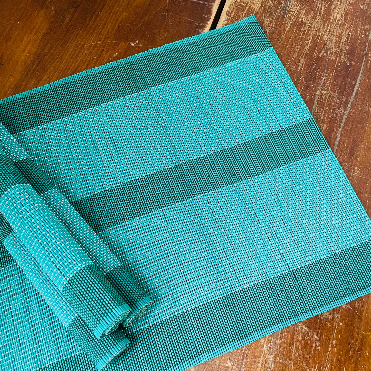 Teal & Green Bamboo Placemats with Stripes- Set of 4