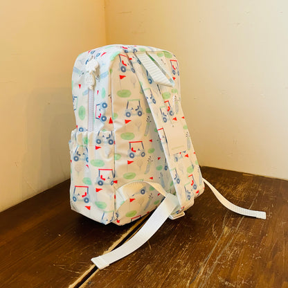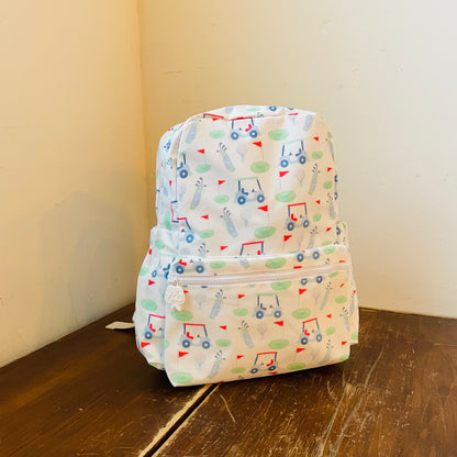 The Backpack is offered in several wipeable classic patterns, and equipped with an outer zipped pocket and two drink holder sleeves.