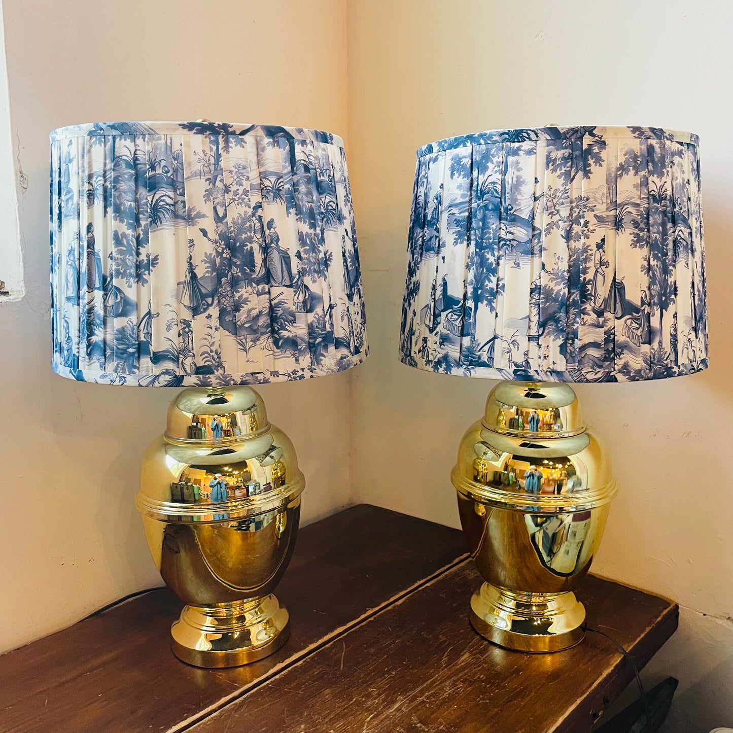 15" wide Blue Toile shade