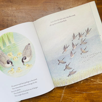 This is a stunningly illustrated, moving picture book about two geese bonded for life. They have six eggs, and then six chicks, and they teach them how to fly. But when one of the geese in the partnership becomes ill and dies, what happens to its partner goose? She is forced, suddenly, to brave the world on her own—until a new partner goose comes along, calling to her with his own powerful moves. With scientific facts, a beautiful text, and gorgeous art work, young readers will find themselves inspired to take a closer look at the natural world around them.