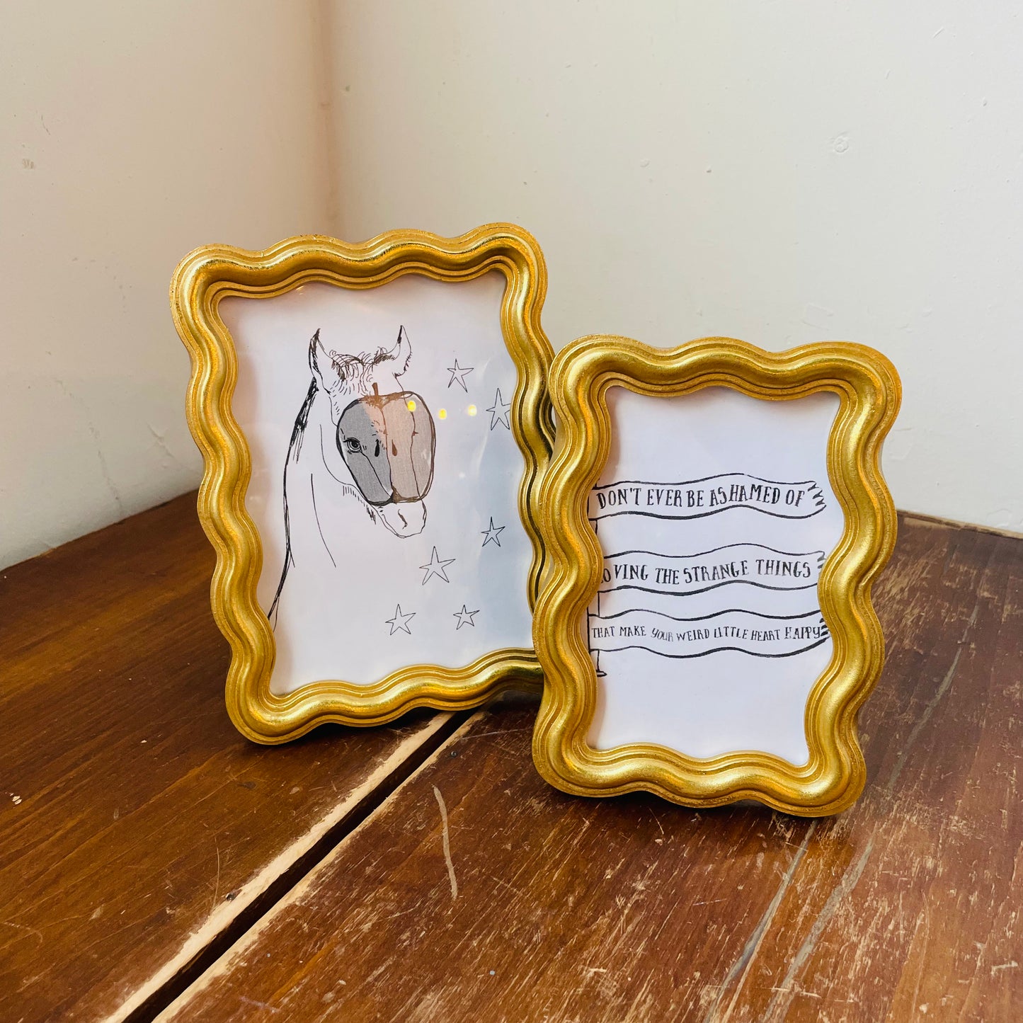 Elevate your cherished memories with our Set of 2 Triple Wave Photo Frames. Crafted from premium resin and glass, each frame features a unique triple wave design, adding a touch of elegance to your space. Display your favorite moments in style with the included sizes of 4" x 6" and 5" x 7", allowing for versatile orientation options, either horizontal or vertical. Handcrafted with attention to detail, these frames bring a sophisticated allure to any room.