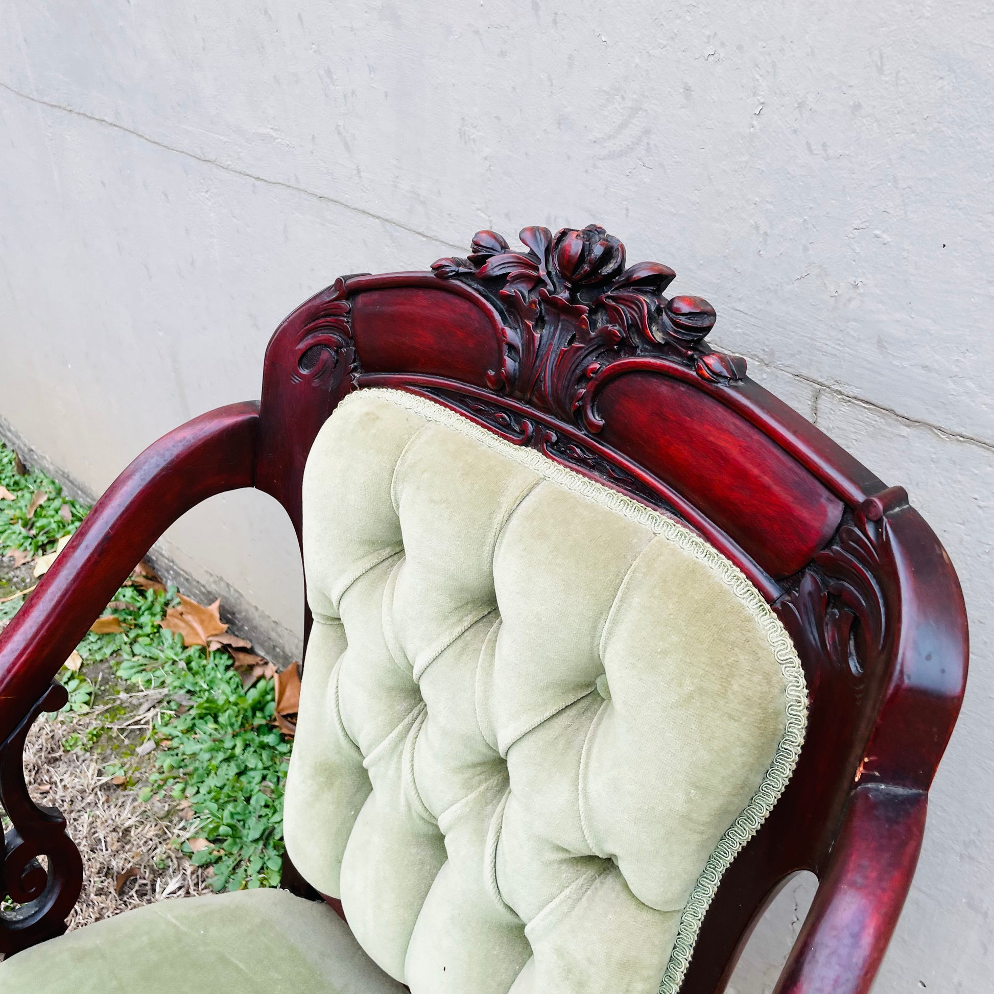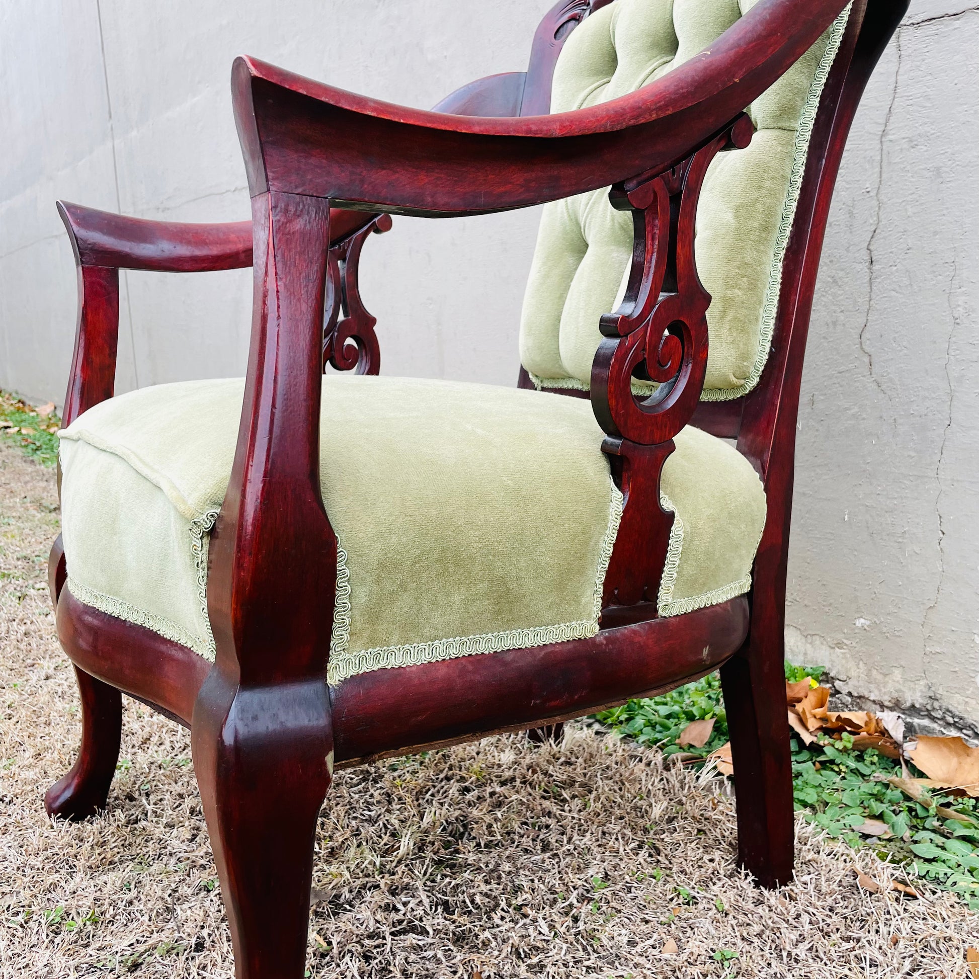Victorian Mahogany Armchair with Green Velvet- Vintage